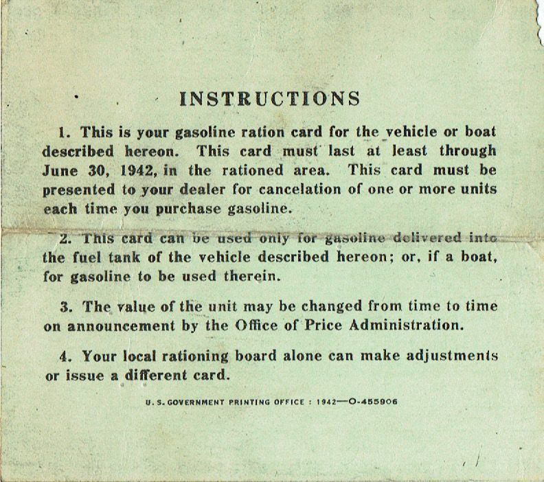 Lampe: Willett Lampe Gasoline Ration Card, 1942Entry/Object ID