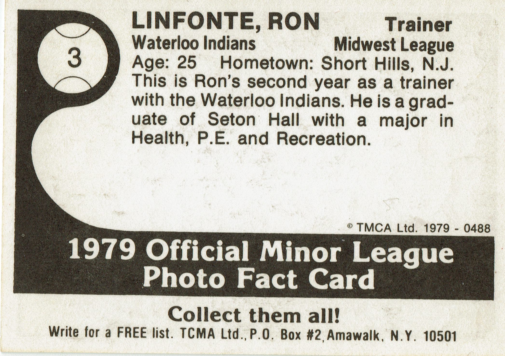 1979 Minor League Baseball Card for Ron Linfonte from Short Hills, N.J.Acquisition