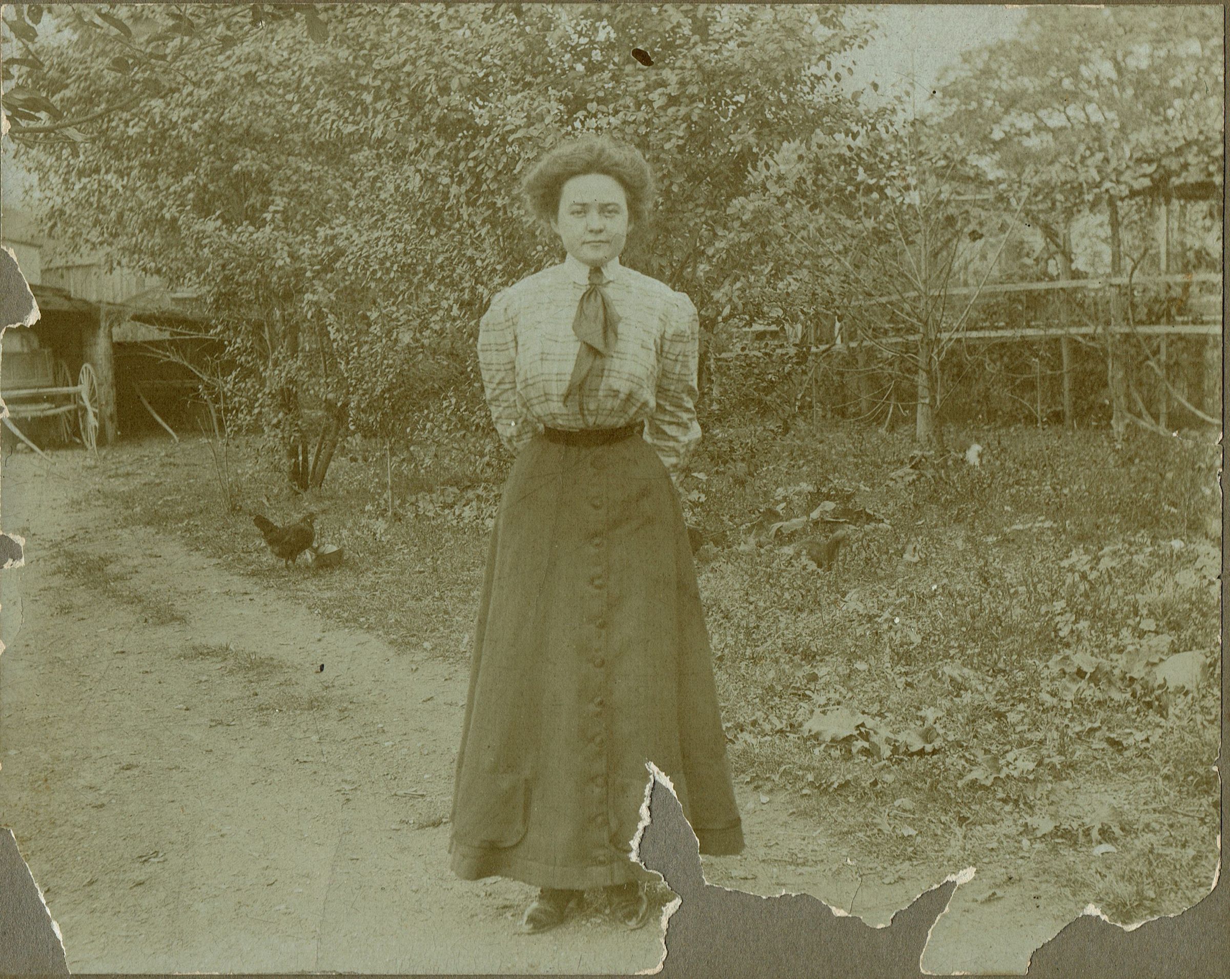 Photograph of J. Lonergan standing outside on a dirt driveway. Inscription on verso read, "J. Lonergan, Spring Street, Millburn."Acquisition