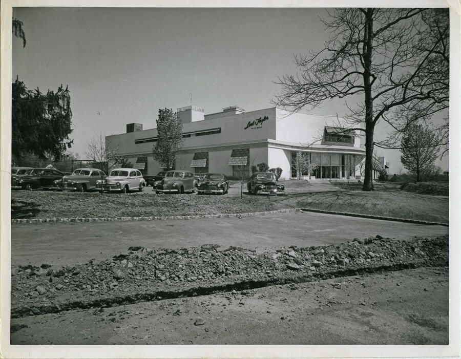 A glossy, b/w photo of the former Lord & Taylor department store on Millburn Avenue in Millburn. The photo appears to be from the 1950's. The store opened in Millburn on Feb. 9. 1949. The photo has a 1/2 long tear in the middle of the left edge (front) and abut 3-4 light creases. The back is stamped: "Photos by John M. Fox, 1175 Park Ave., N.Y.C., Tel. Sacramento 2-6879. Corners are lightly bumped and edges are lightly worn. Some yellowing is visible on the back, especially along the top edge of the back. Purchased on eBay from Len Jacobson, 1876 Litchfield Rd. Watertown CT 06795-1026.Acquisition