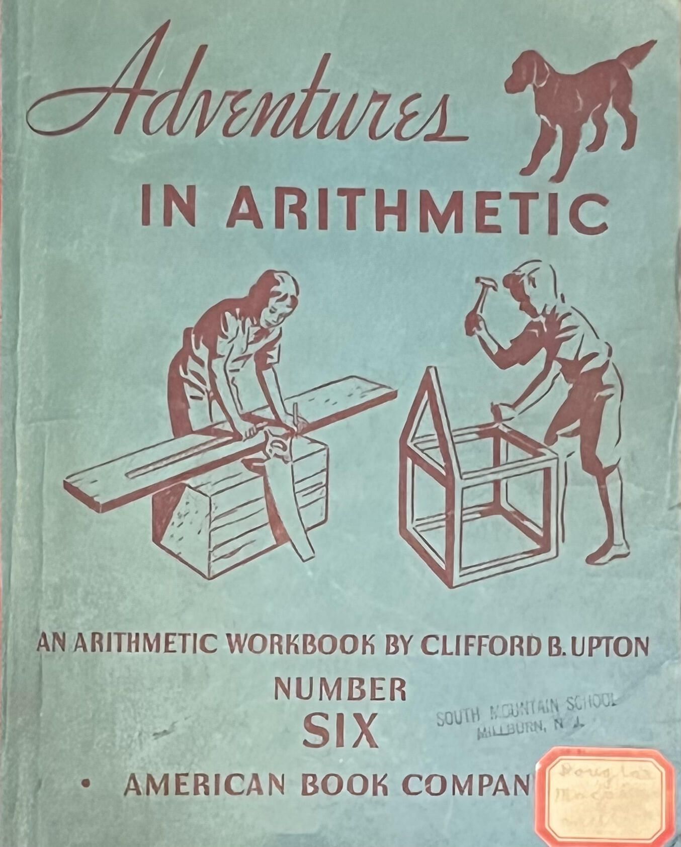 Dougas Macpherson's copy of Clifford B. Upton, "Adventures in Arithmetic Number Six.," created by Clifford B. Upton. New York: American Book Company, 160 pp. Copy was used at the South Mountain School.Acquisition