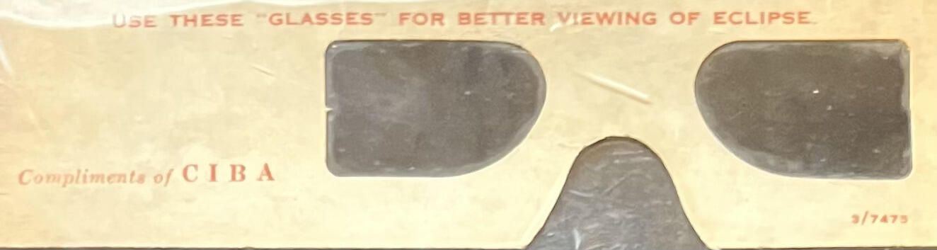 Macpherson's Eclipse viewing sunglasses, compliments of CIBA. Dimensions: 5.5 by 1.5.Collection