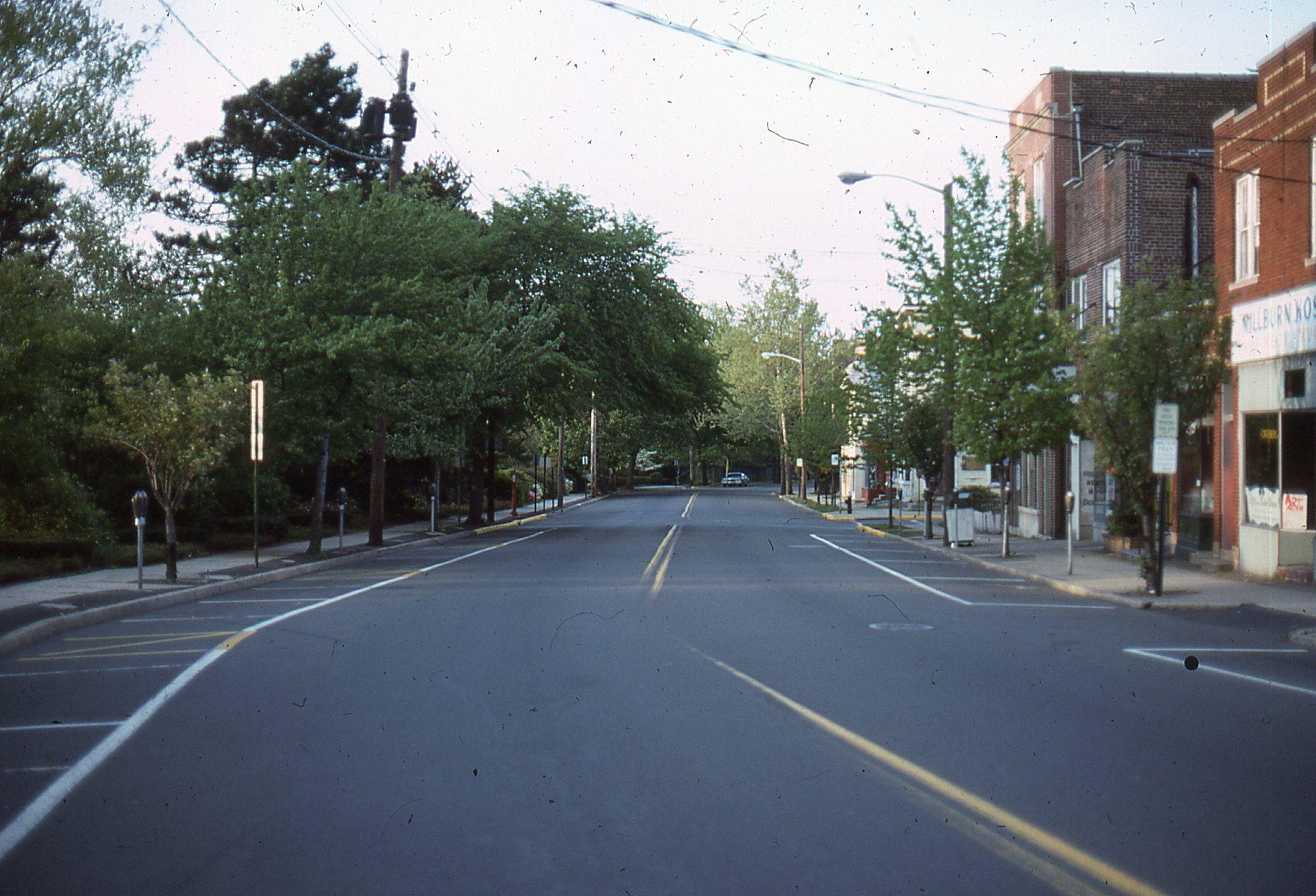 Photograph of Main Street looking south below Millburn Avenue taken by Owen Lampe in May 1976. Taylor Park is on the left.Photograph Details