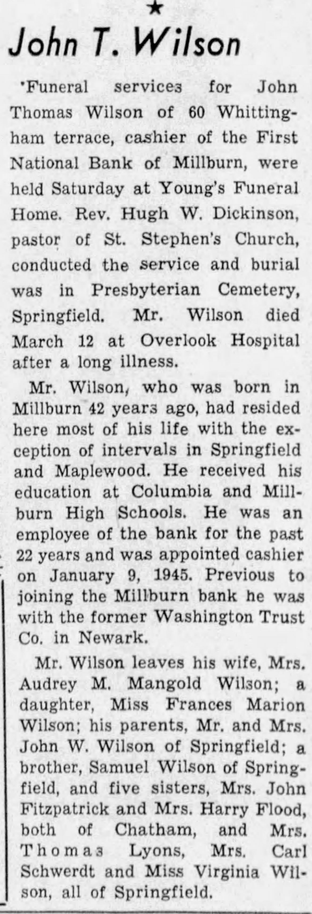 Photograph of John Thomas Wilson, first husband of Audrey Mangold and father of Frances Marion Wilson (Schrumpf).Photograph Details