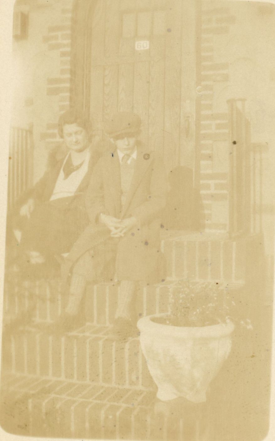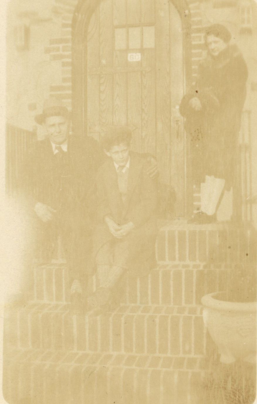 Photographs of William, Barbara and John Mangold (1916-1930) on the front steps outside their house at 60 Whittingham Terrace from c. 1928-30.Photograph Details