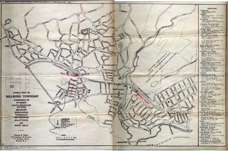 Map: Street Map of Millburn Township, 1929