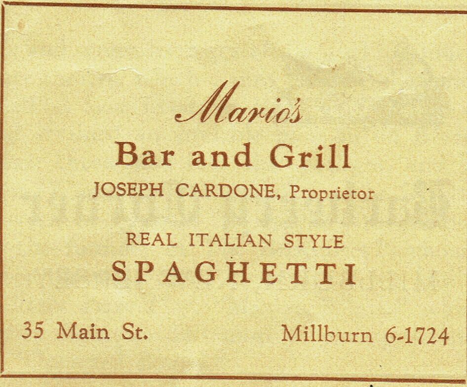 Advertisement for Mario's Bar and Grill, Joseph Cardone, Proprietor, Real Italian Style Spaghetti, 35 Main Street, Millburn from Paper Mill Playhouse New Jersey Theatre Festival Program, 1939.Acquisition
