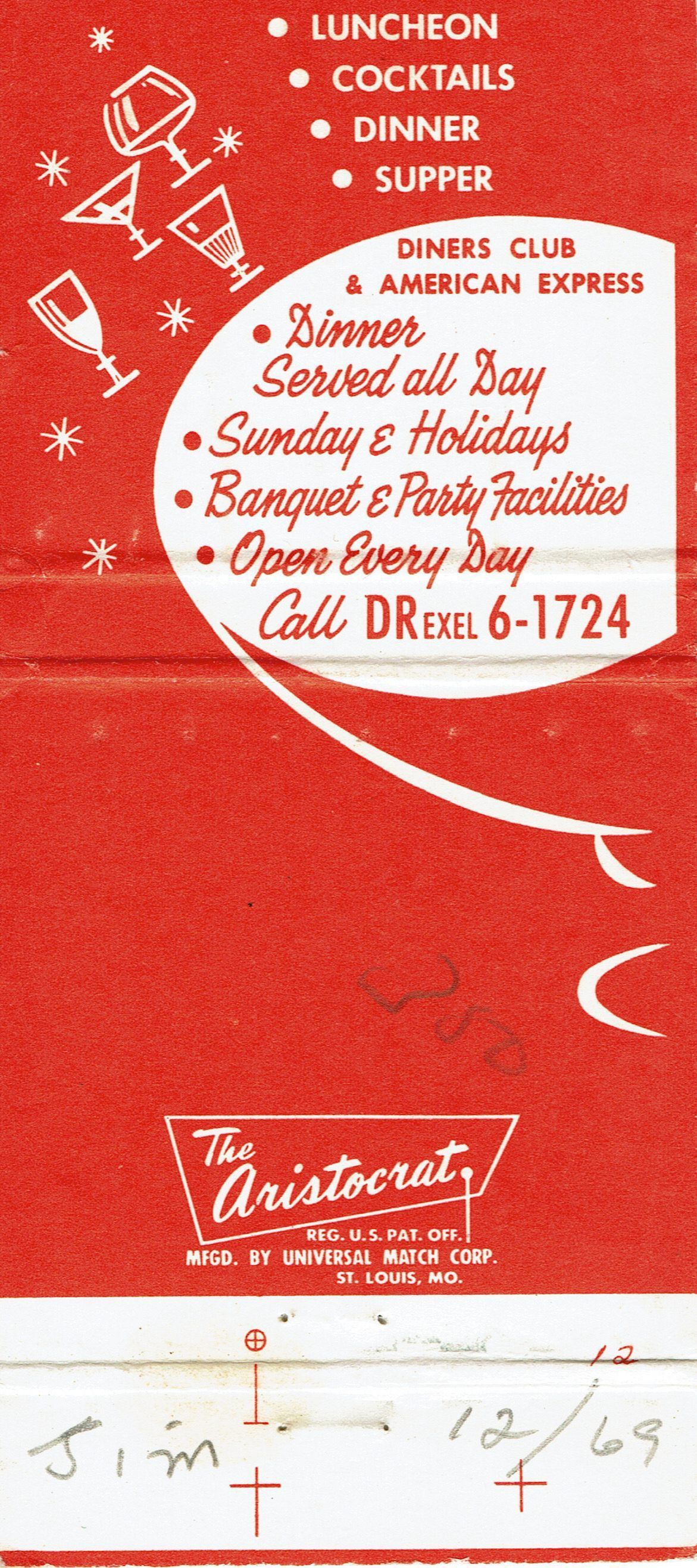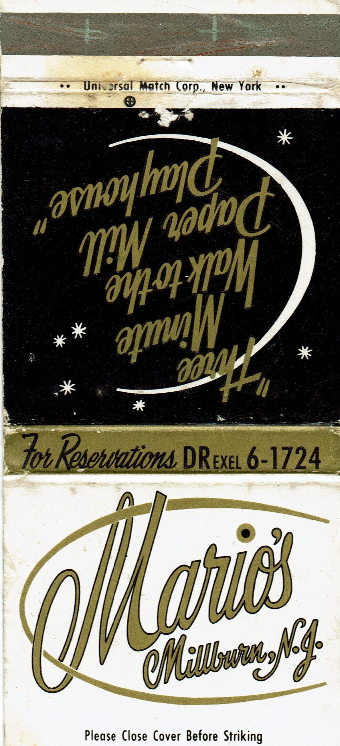 Matchbook cover for Mario's restaurant, Millburn.