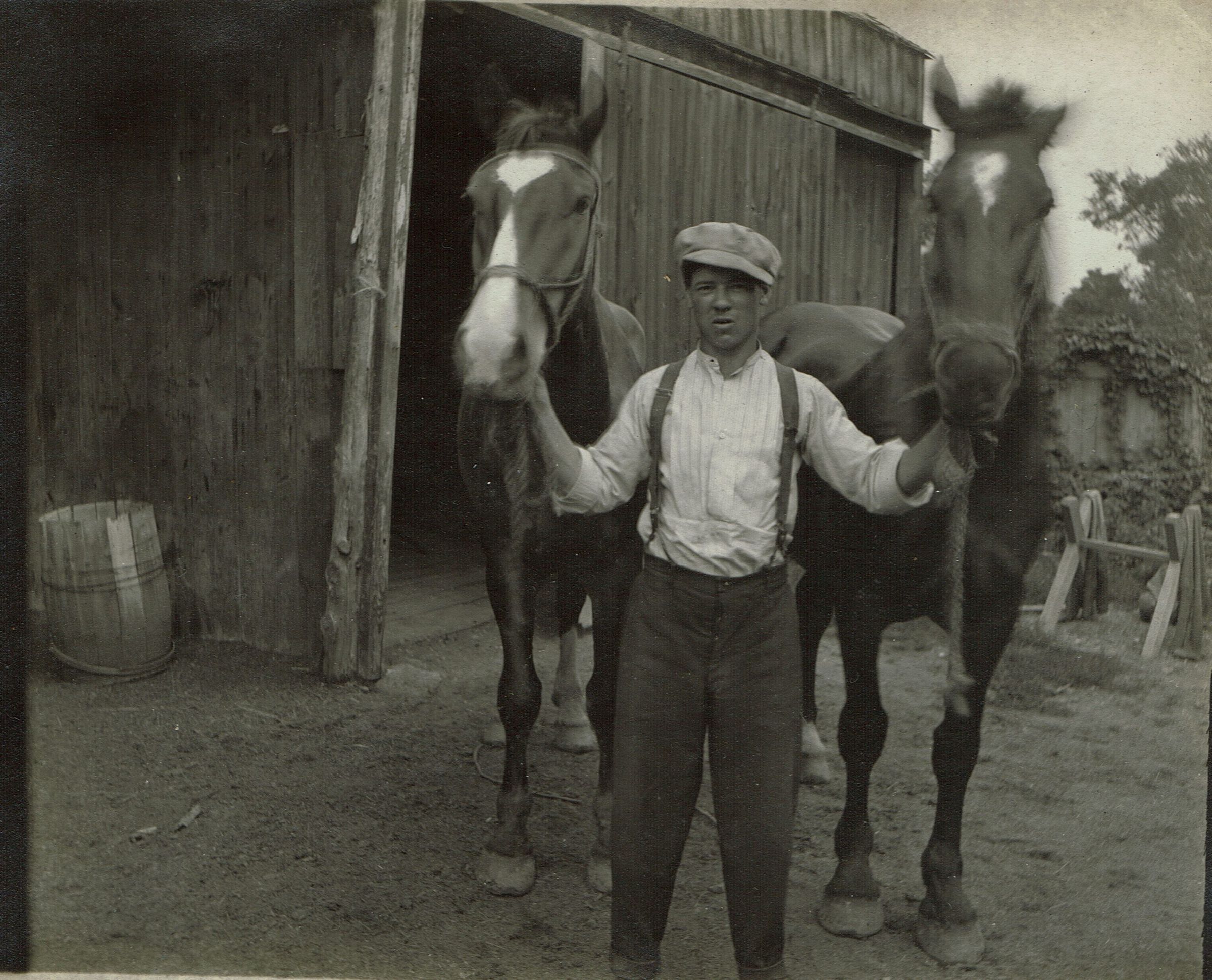 Marshall-Schmidt Album: Man Holding Two Horses By BridlesEntry/Object ID