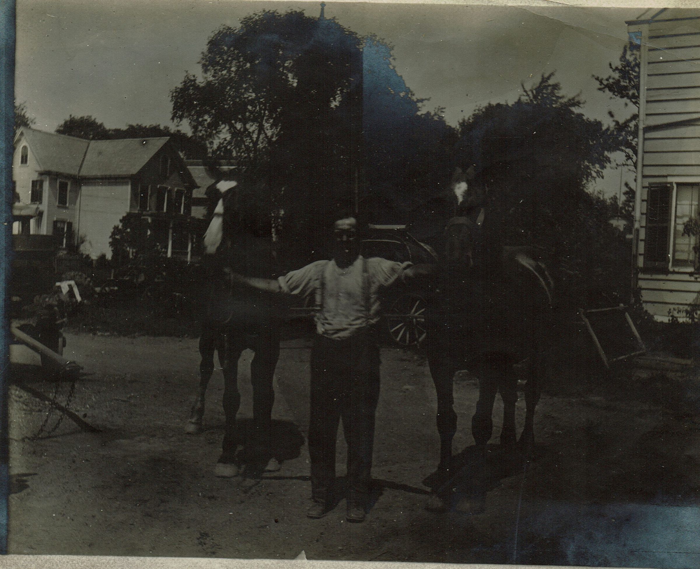 Marshall-Schmidt Album: Man Holding Two Horses in YardEntry/Object ID