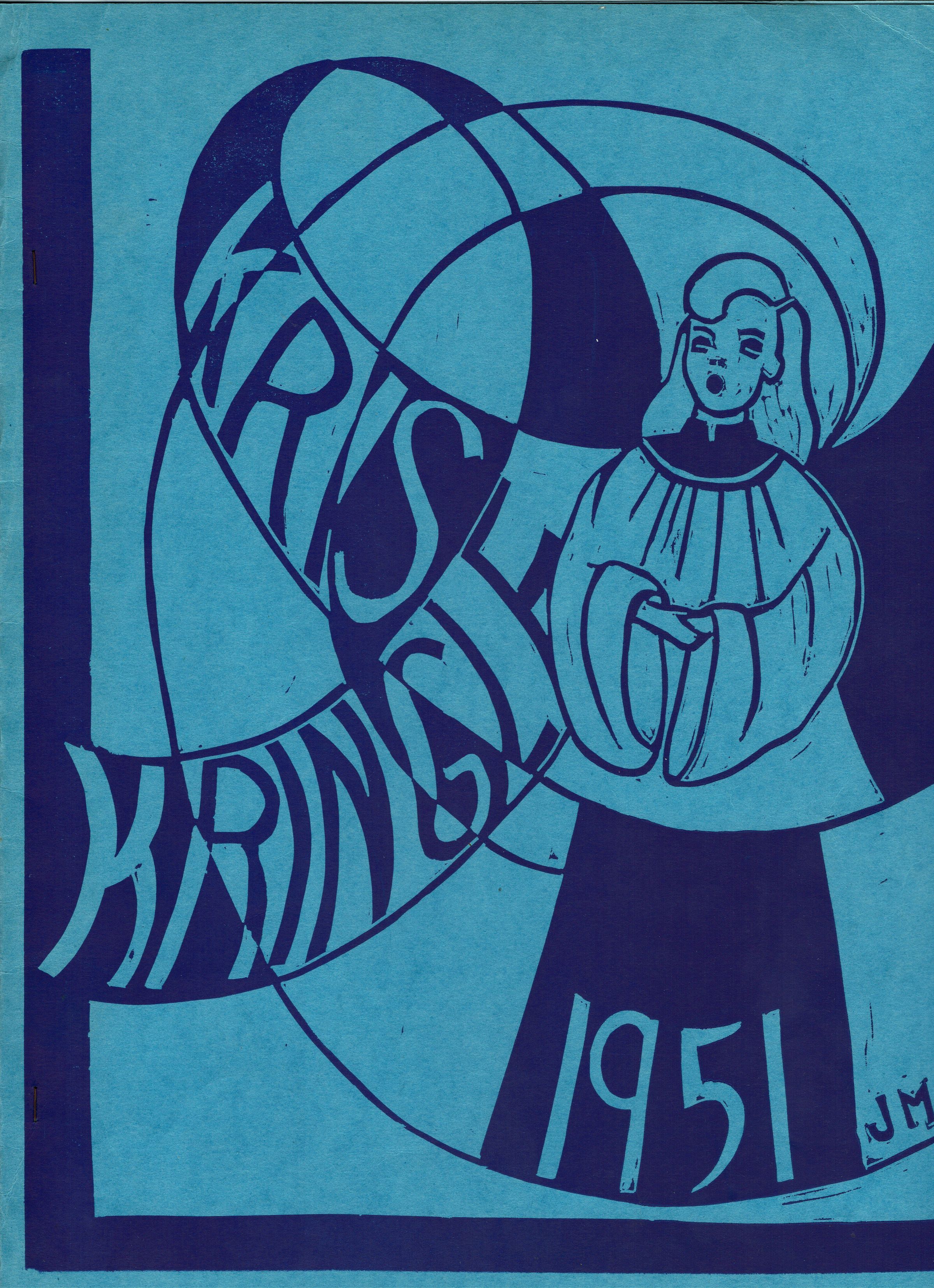 Millburn High School Christmas Service (1951 ) Program. 8 pp., stapled with woodblock print cover.Blue booklet with illustration on front. selections, performers, and contributors inside.Acquisition