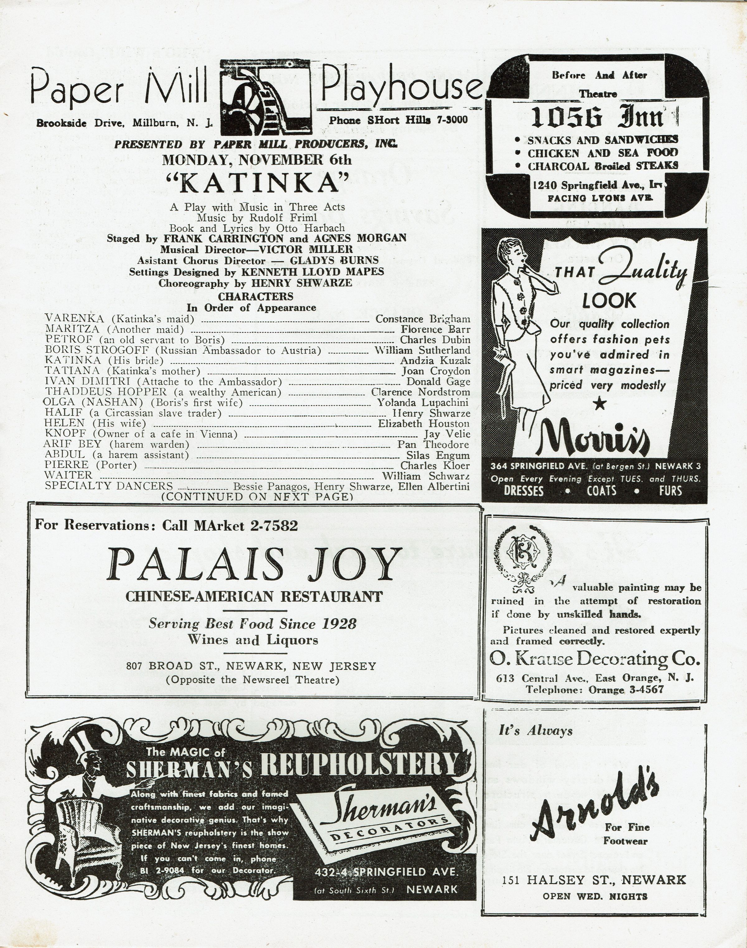 MHS Scrapbook: Paper Mill Playhouse Katinka ProgramEntry/Object ID