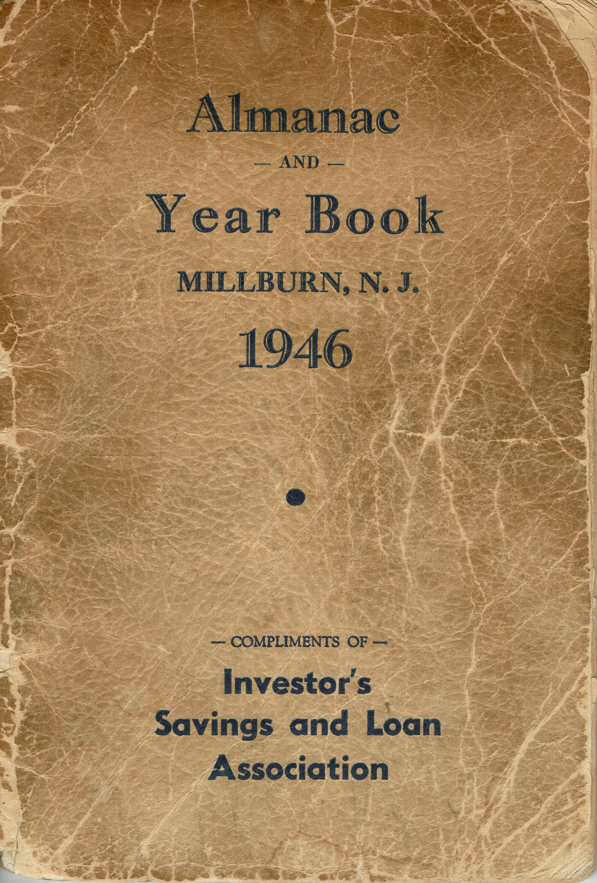 Almanac and Yearbook, Millburn, N.J. 1946. Publication given by the Investor's Savings and Loan Association. Contains advertisements, calendars, recipes, a shopping guide to businesses, guide to fire call boxes, general information about the Township, Civic Associations. 68 pp., unpaginated.