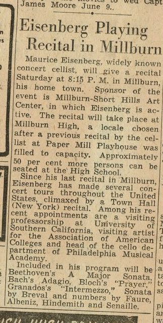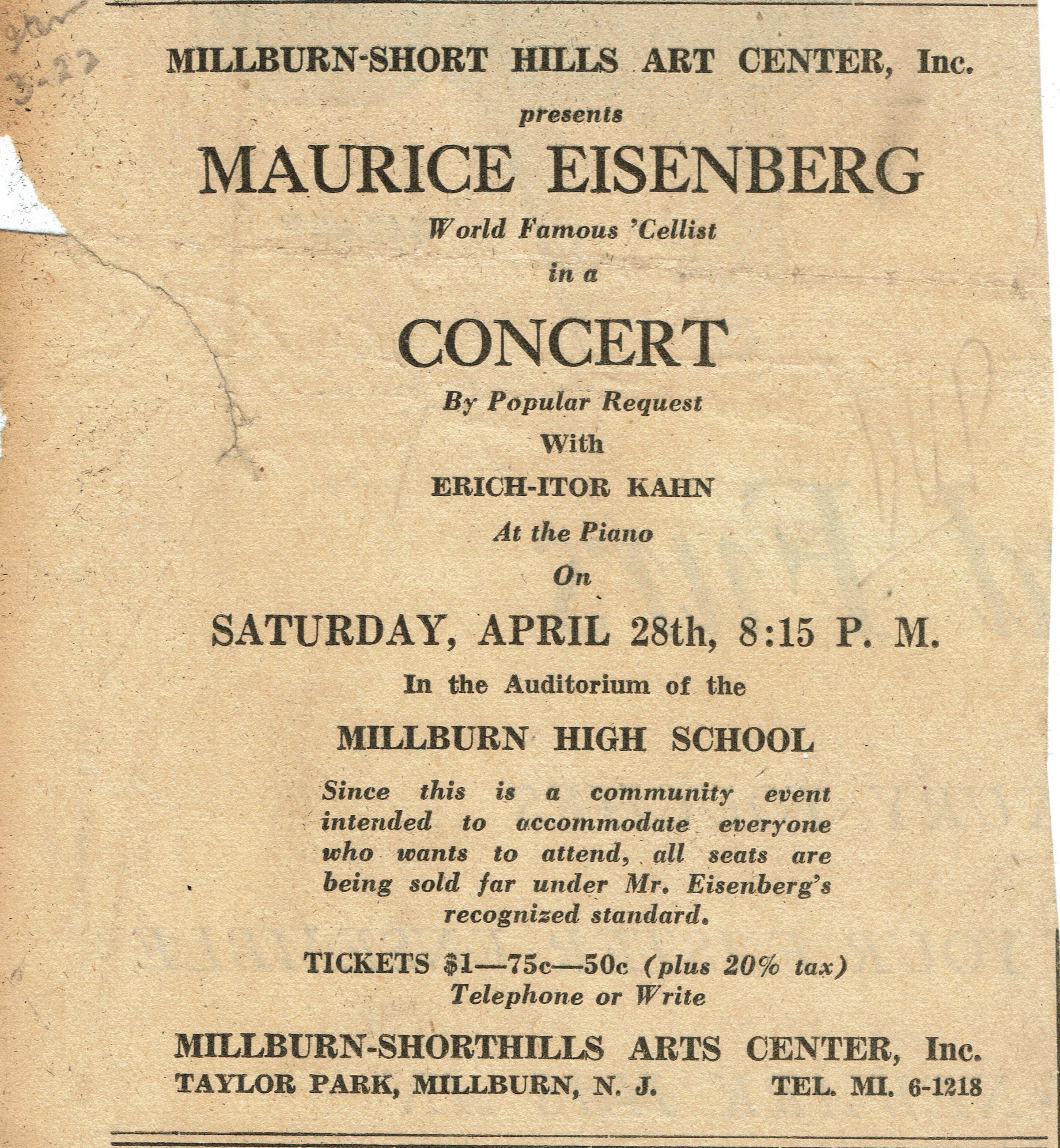 Millburn Art Center 1945 Scrapbook: Maurice Eisenberg Concert Notices, 1945