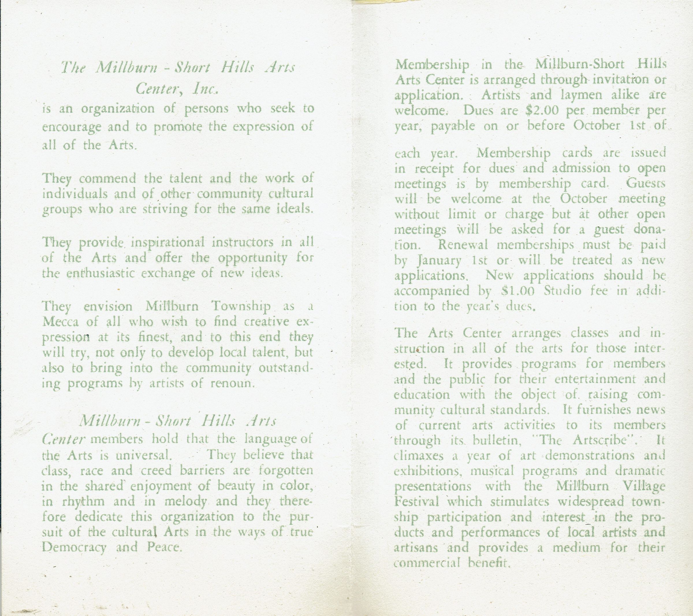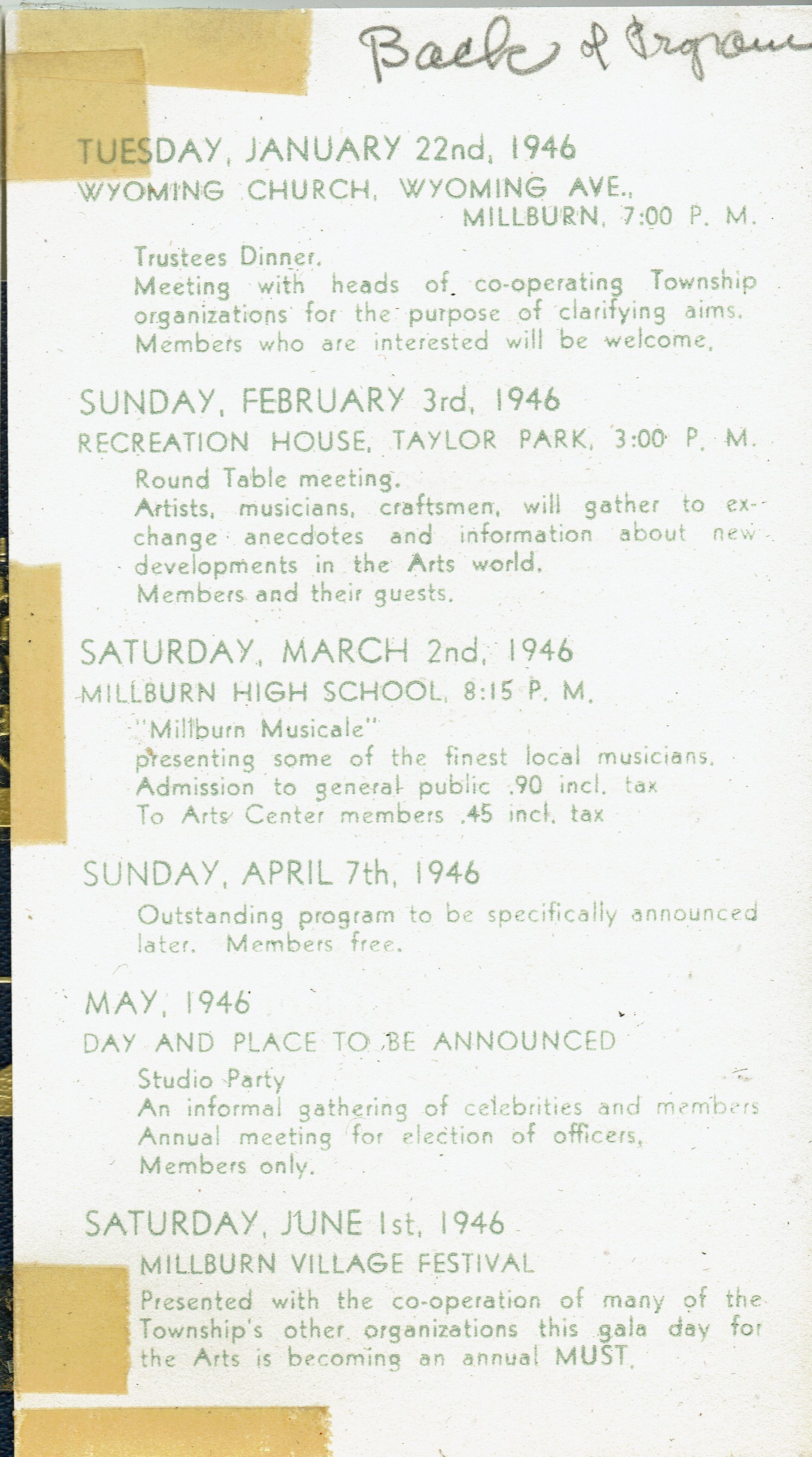 Millburn Art Center 1945 Scrapbook: Millburn Art Center Schedule of Programs, 1945-6Entry/Object ID