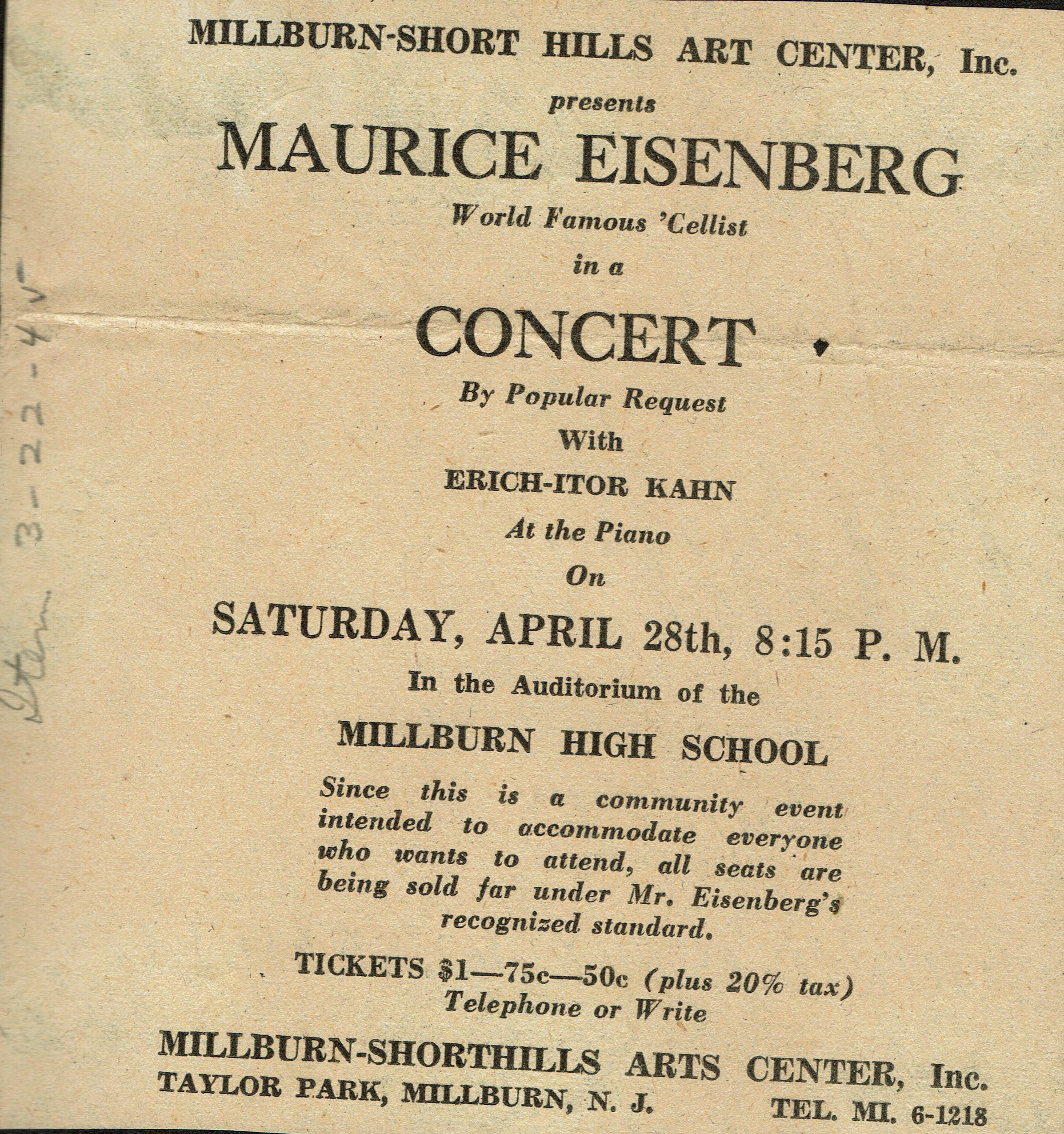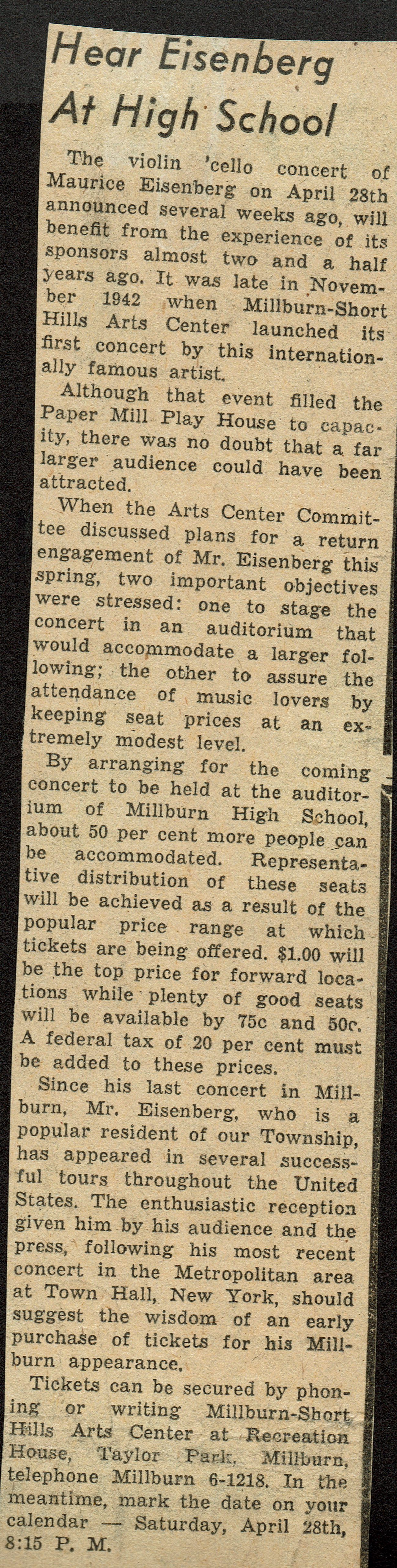 Millburn Art Center 1945 Scrapbook: Millburn High School Concert Advance Publicity, 1945
