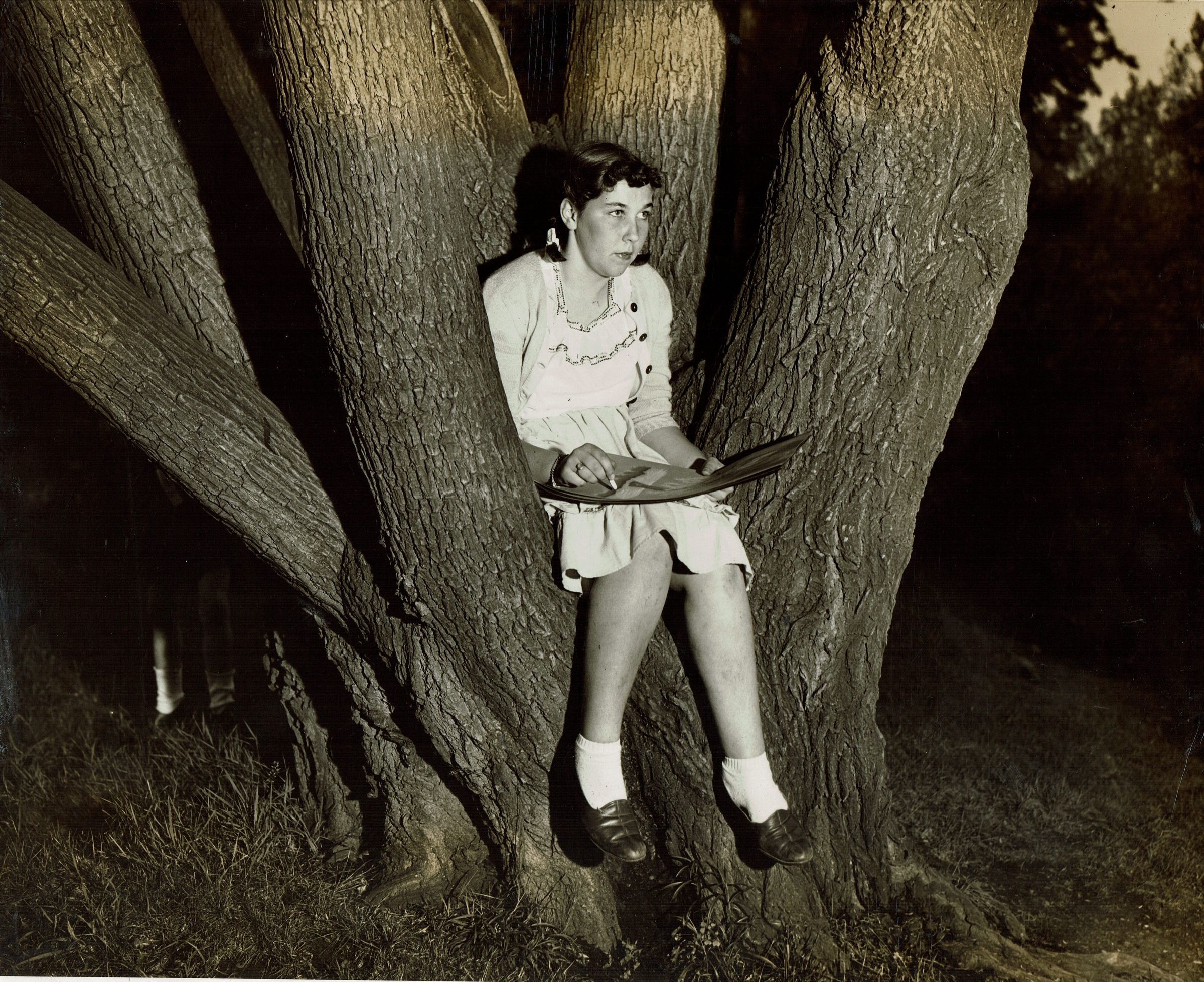 Millburn Art Center 1945 Scrapbook: Sketching in Taylor Park during Village Arts Festival, 1945Entry/Object ID