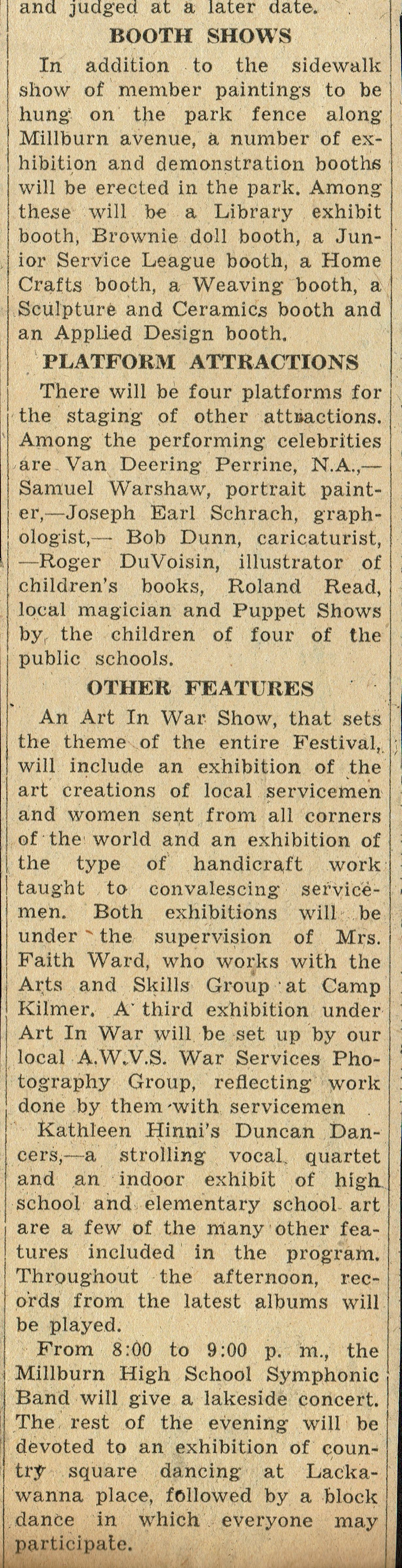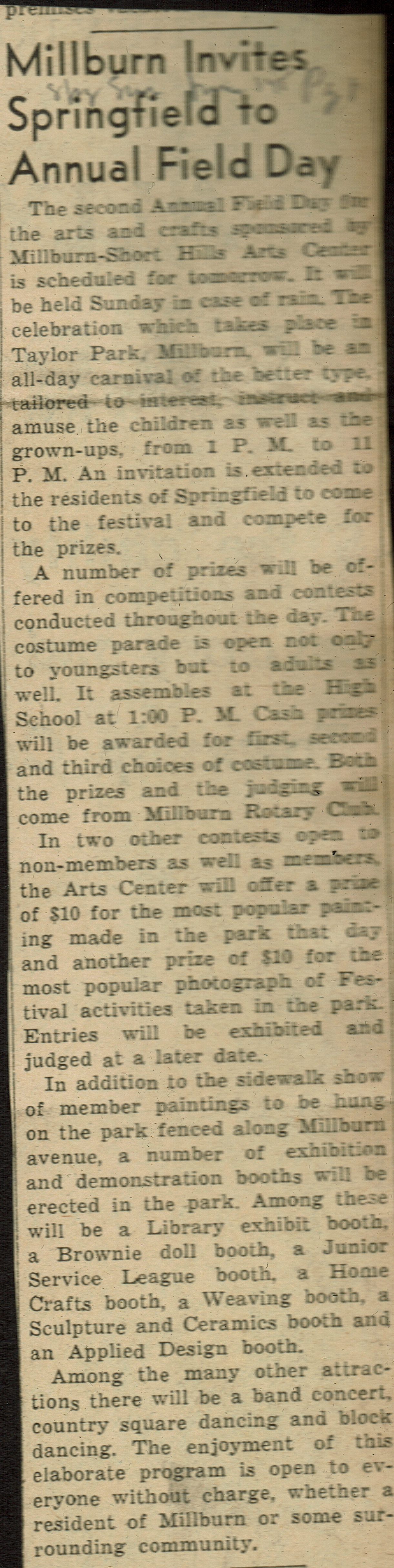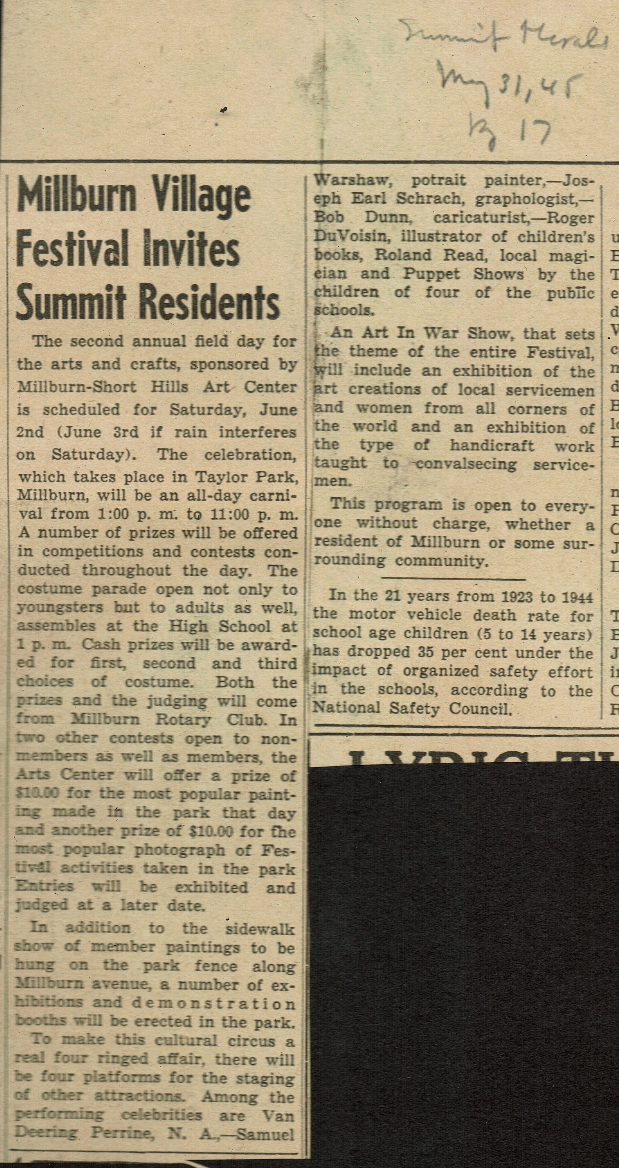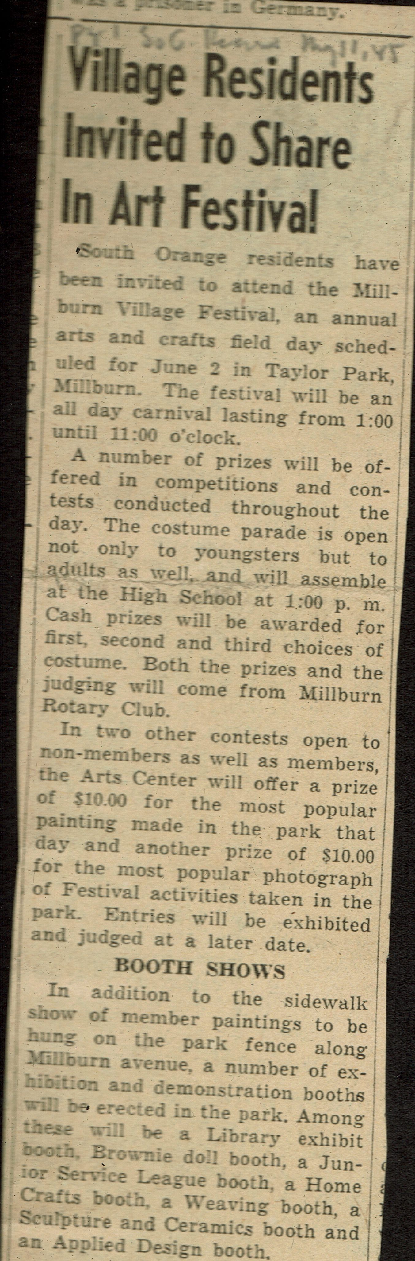 Millburn Art Center 1945 Scrapbook: Summit, South Orange, Springfield 1945 Village Arts Festival Notices