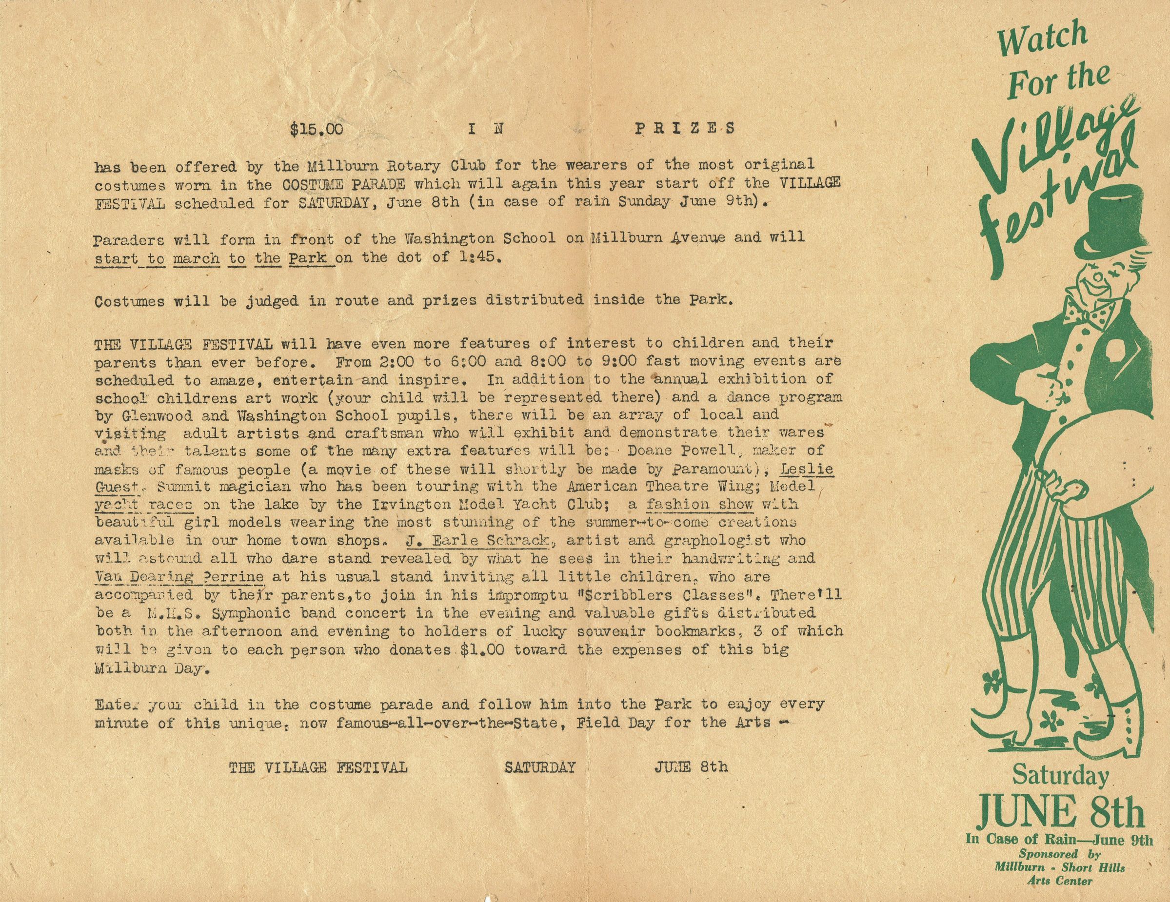 Millburn Art Center 1946 Scrapbook: Watch for the Village Festival, 1946