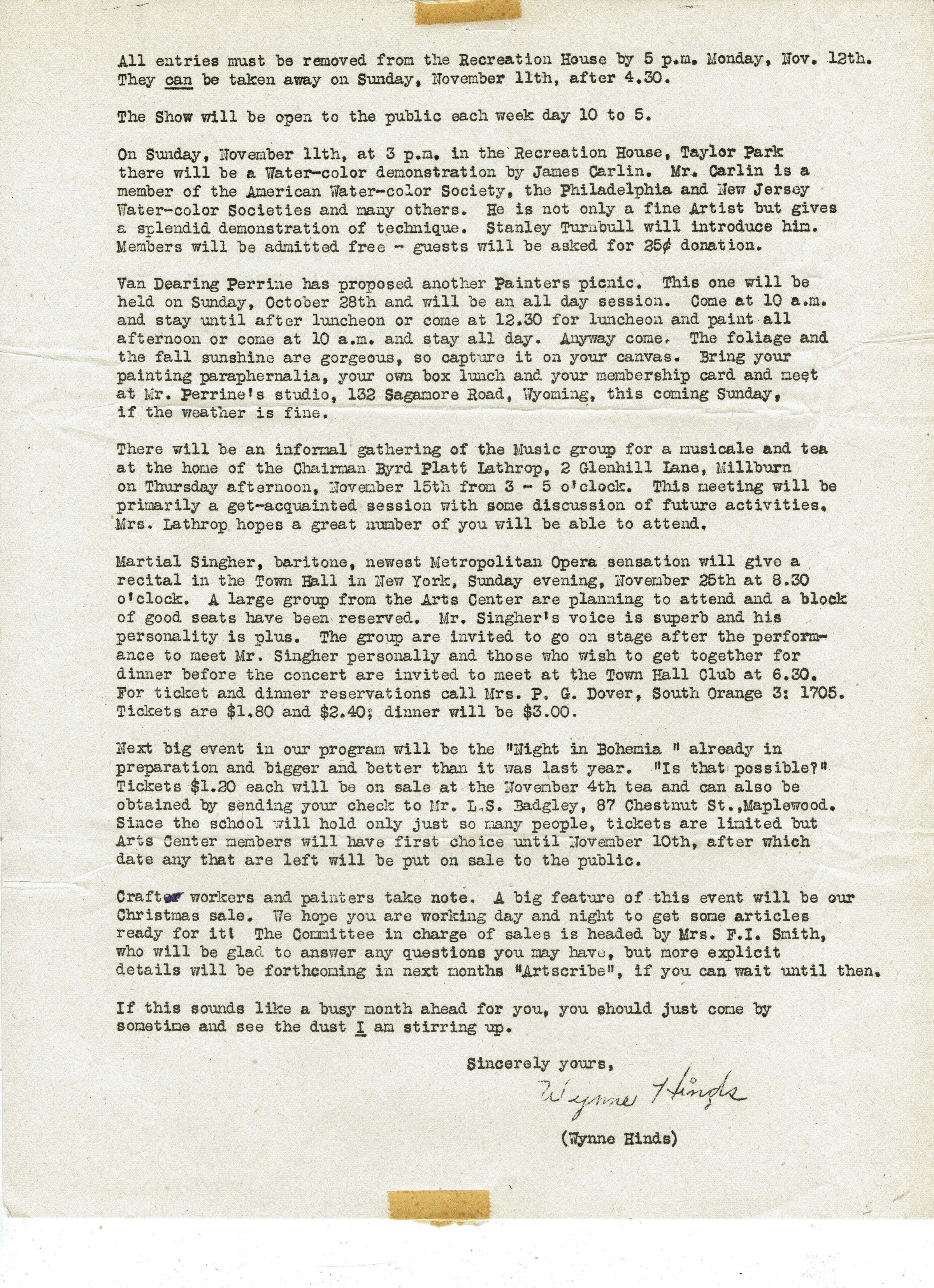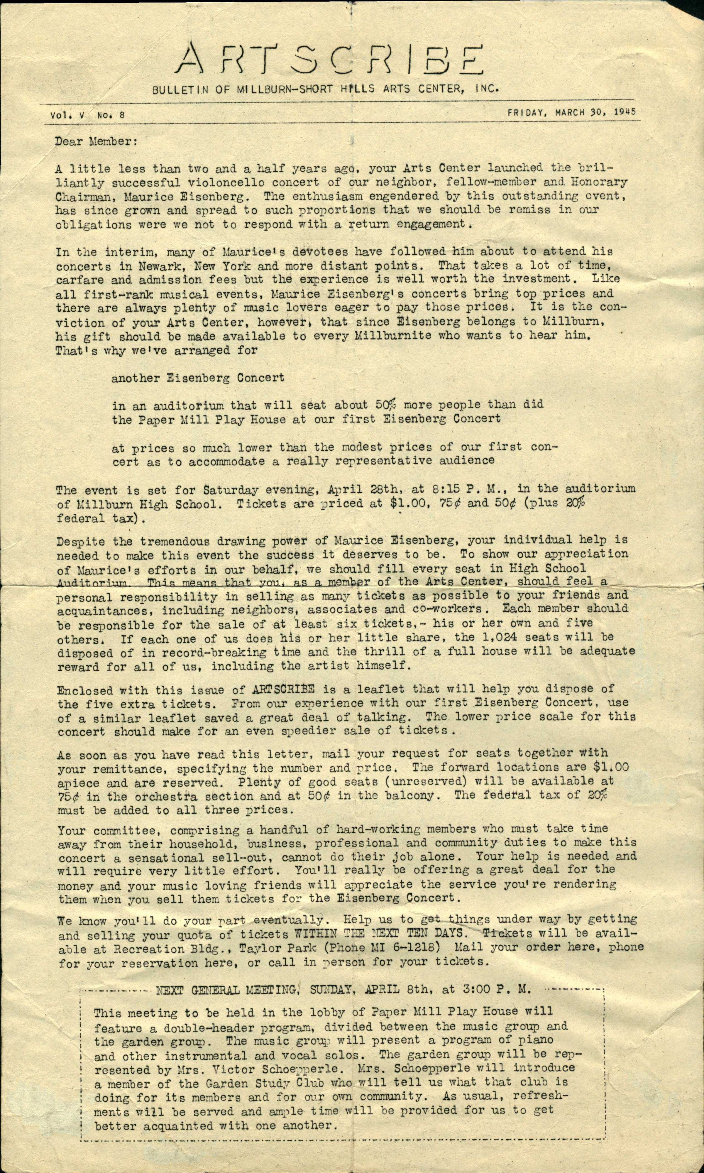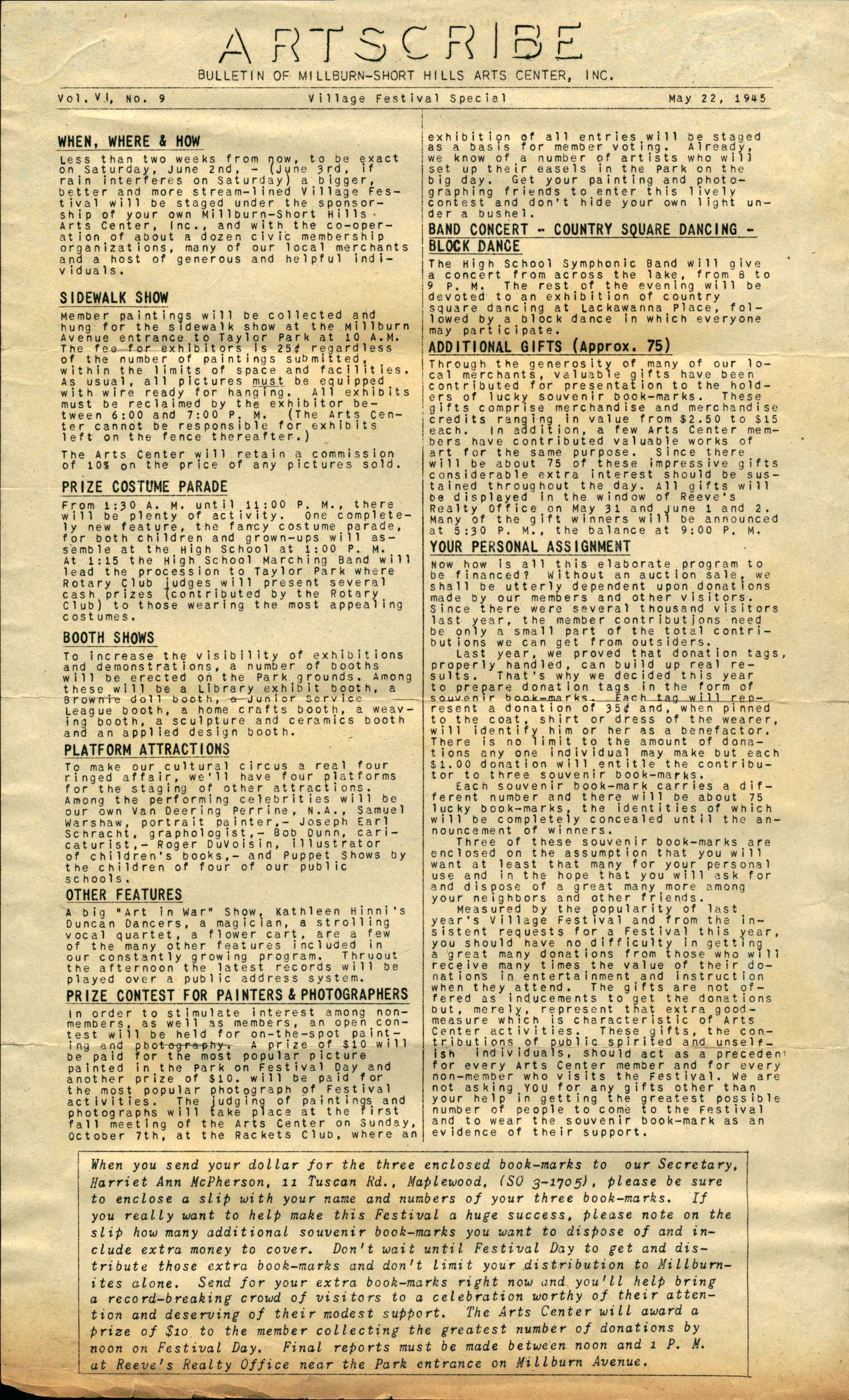 Millburn Art Center: Artscribe Newsletters, 1945