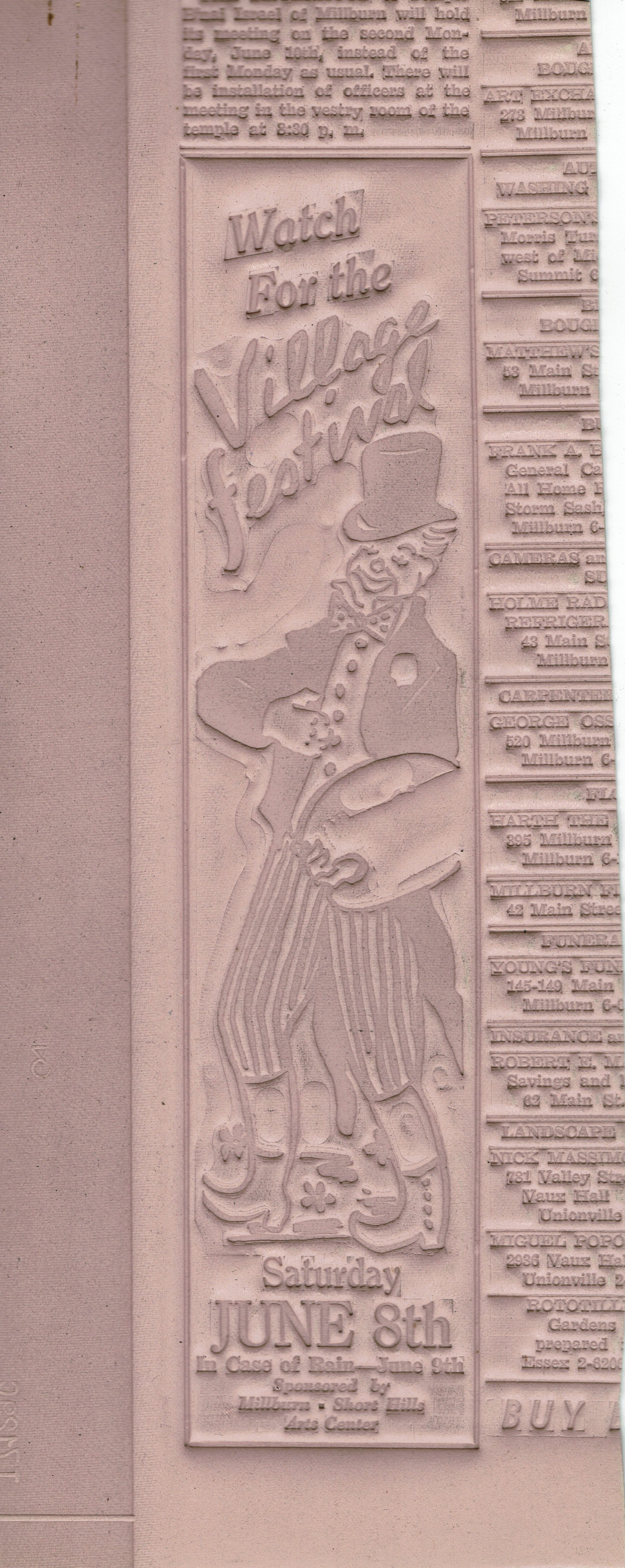 Printing plate/impression from the advertisement for the Millburn Art Center Village Festival, June 8, 1946.Collection