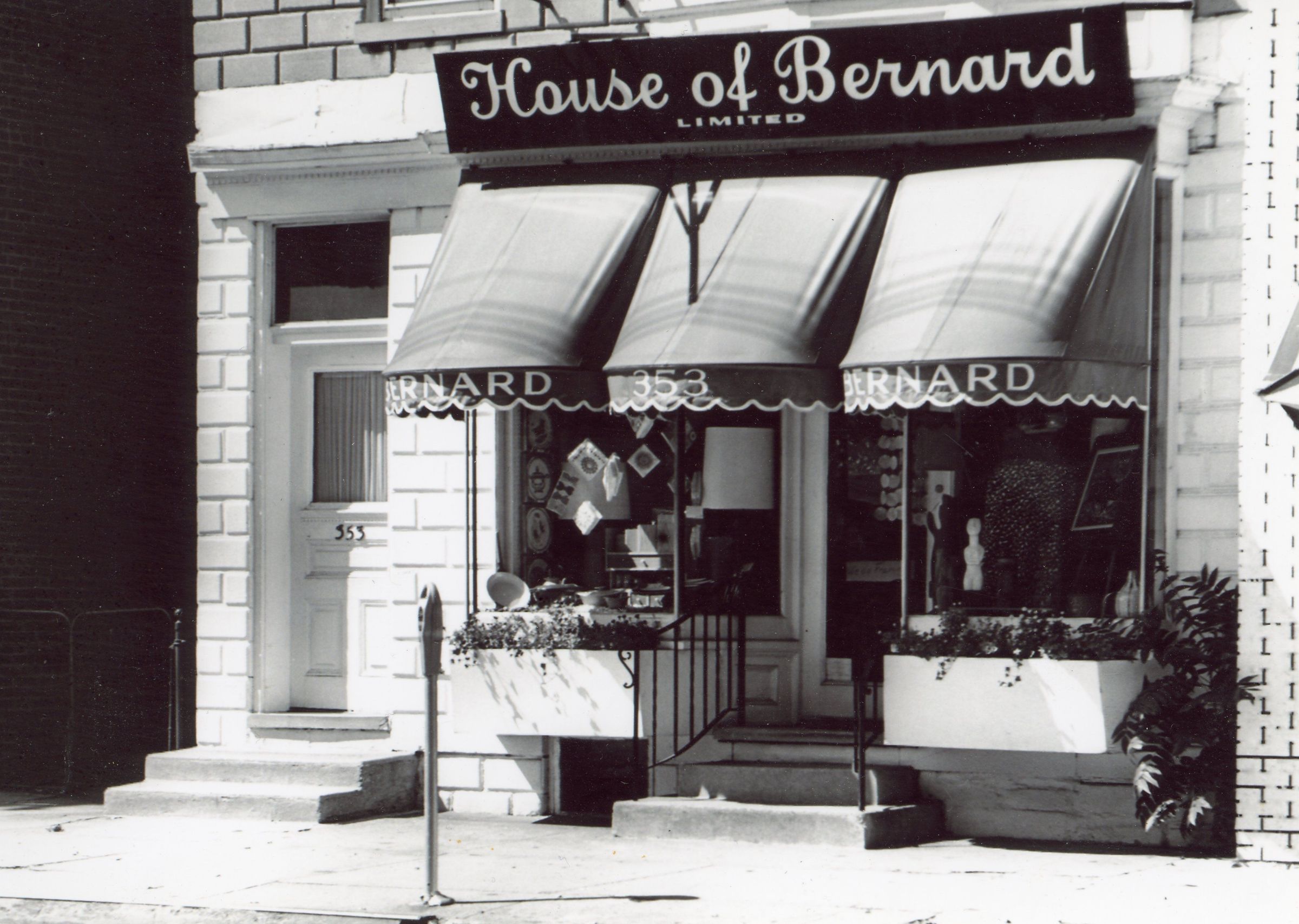 B&W photograph of House of Bernard, 353 Millburn Avenue, taken in c. 1960s. The House of Bernard was a gift shop operated by Shirley and Barry Bernard. It opened on October 12. 1961 and remained in business for 26 years.Acquisition