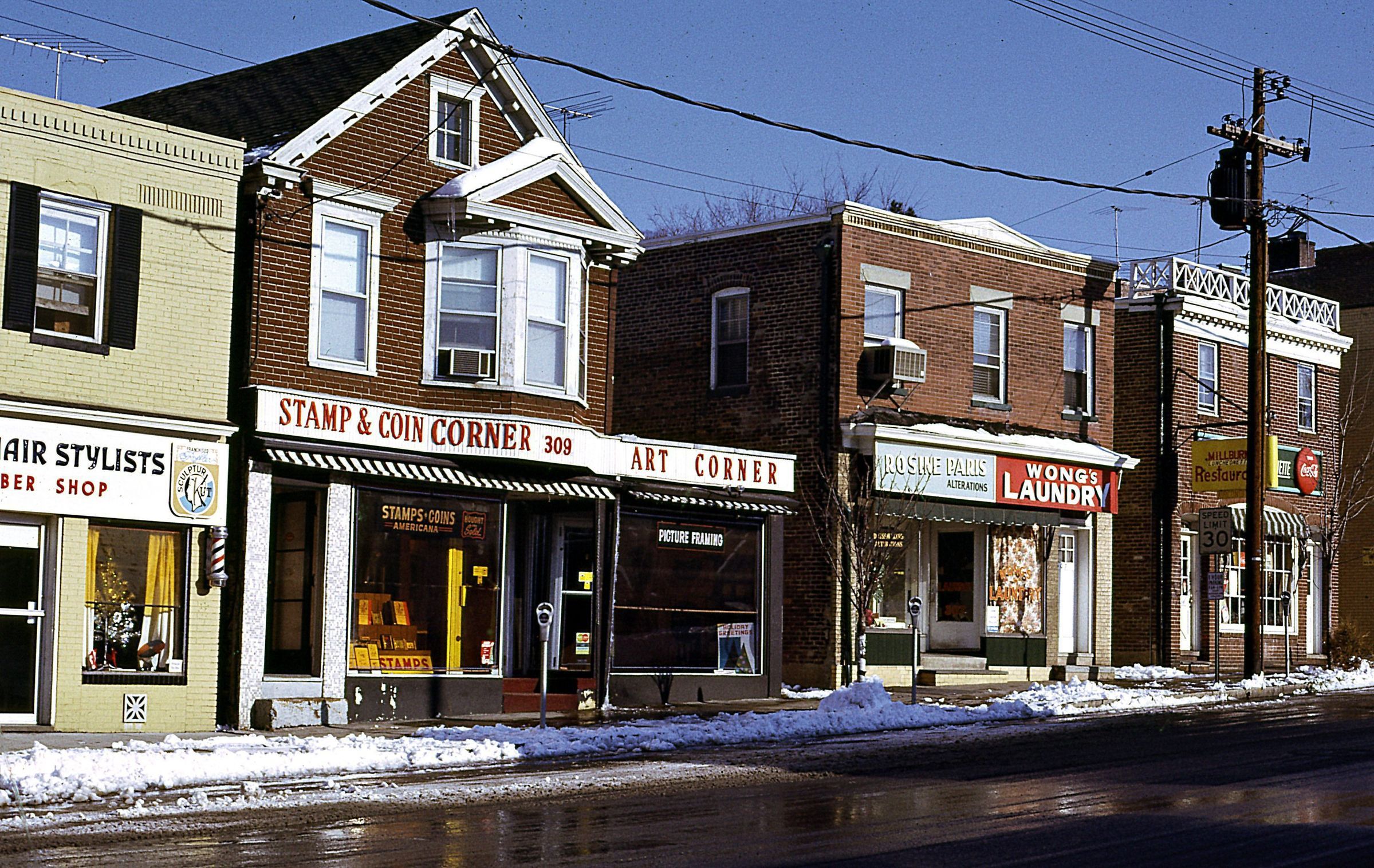 Millburn Avenue: Stamp & Coin Corner, Wong's Laundry, c. 1960Entry/Object ID