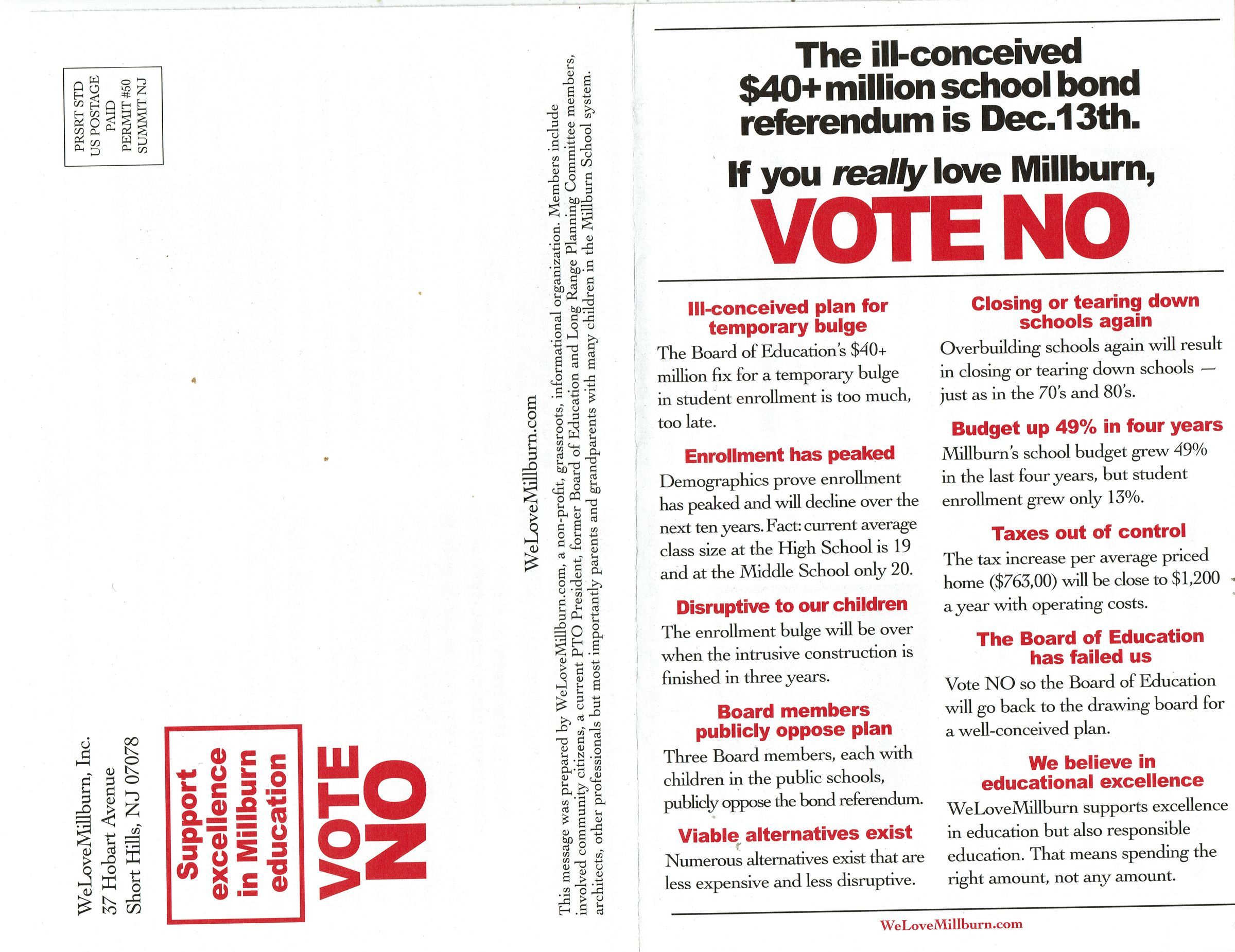 Millburn Bond Referendum Information and Opposition, 2005