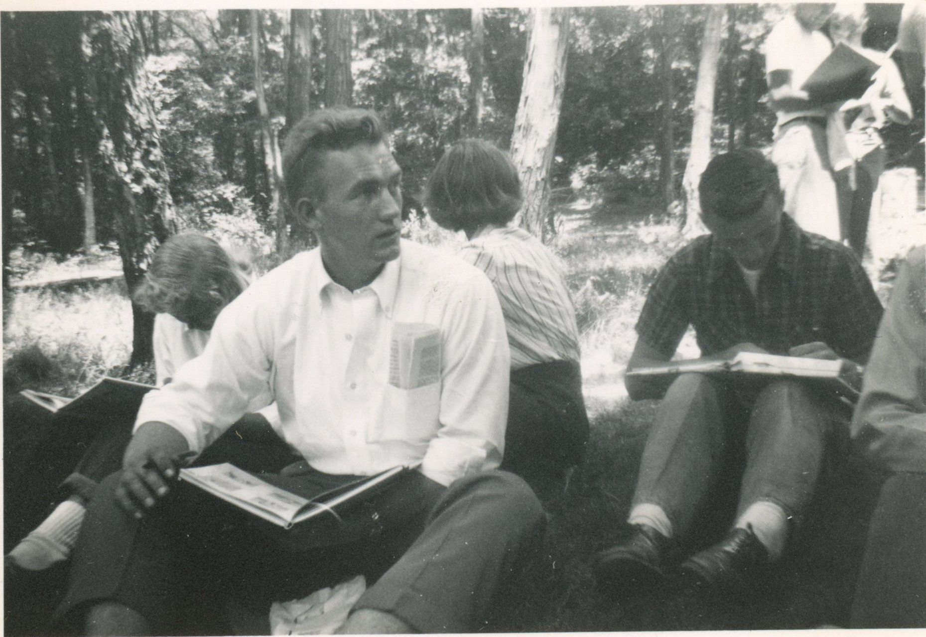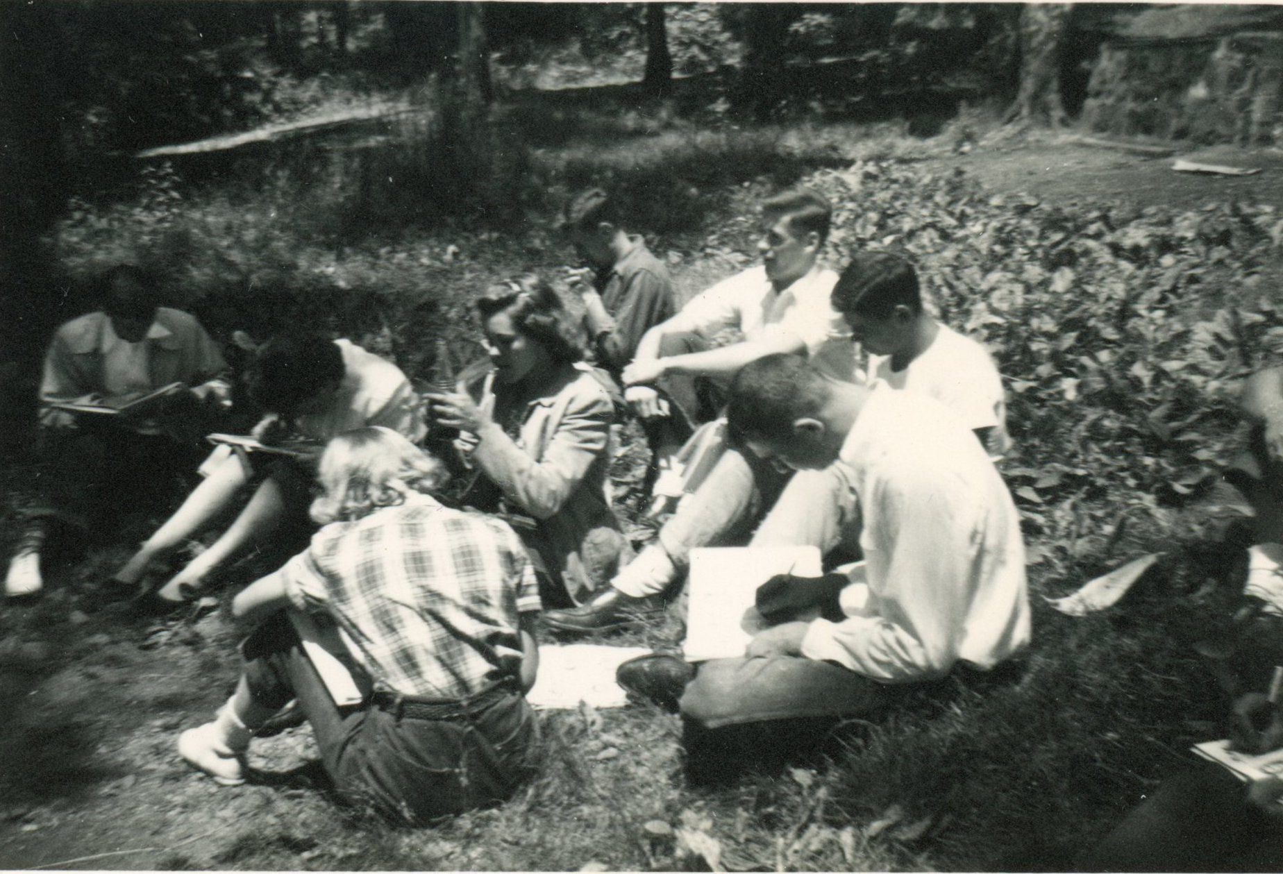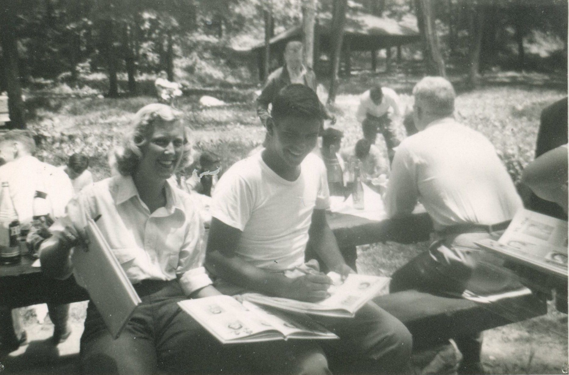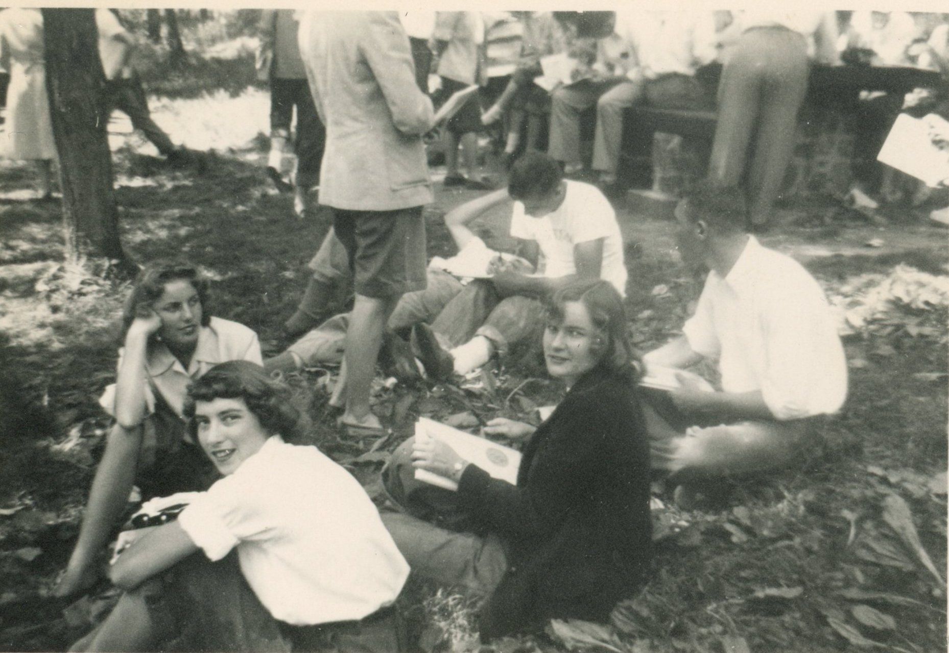 Photographs (6) of students from the class of 1949 signing yearbooks.Collection