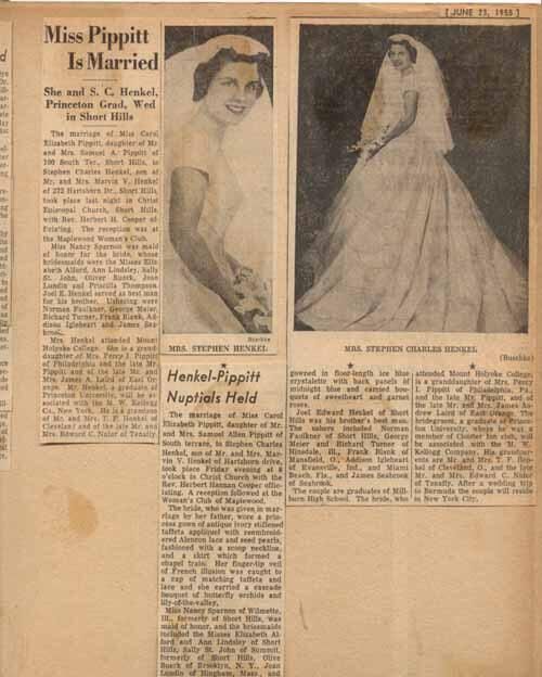 Millburn High School class of 1952 wedding articlesEntry/Object ID