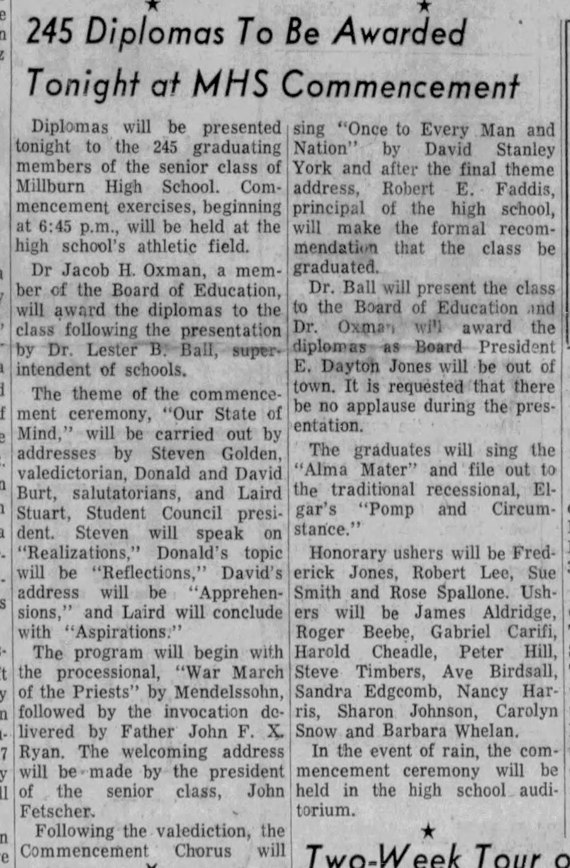 Millburn High School: Commencement Exercises, 1961Entry/Object ID