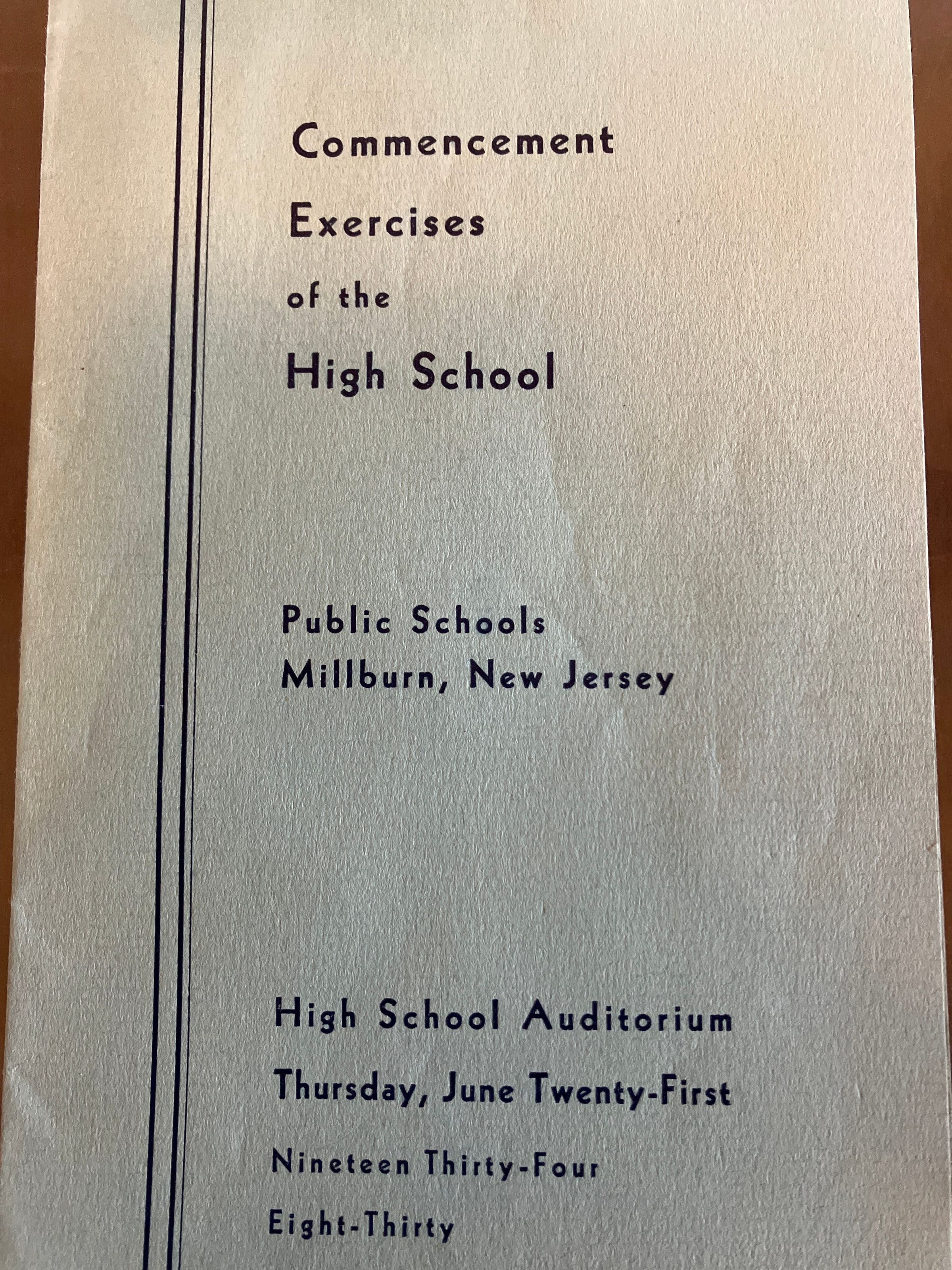 Millburn High School: Program of the Commencement of the Freshmen Class of 1934, list of student names, order of ceremony.Acquisition