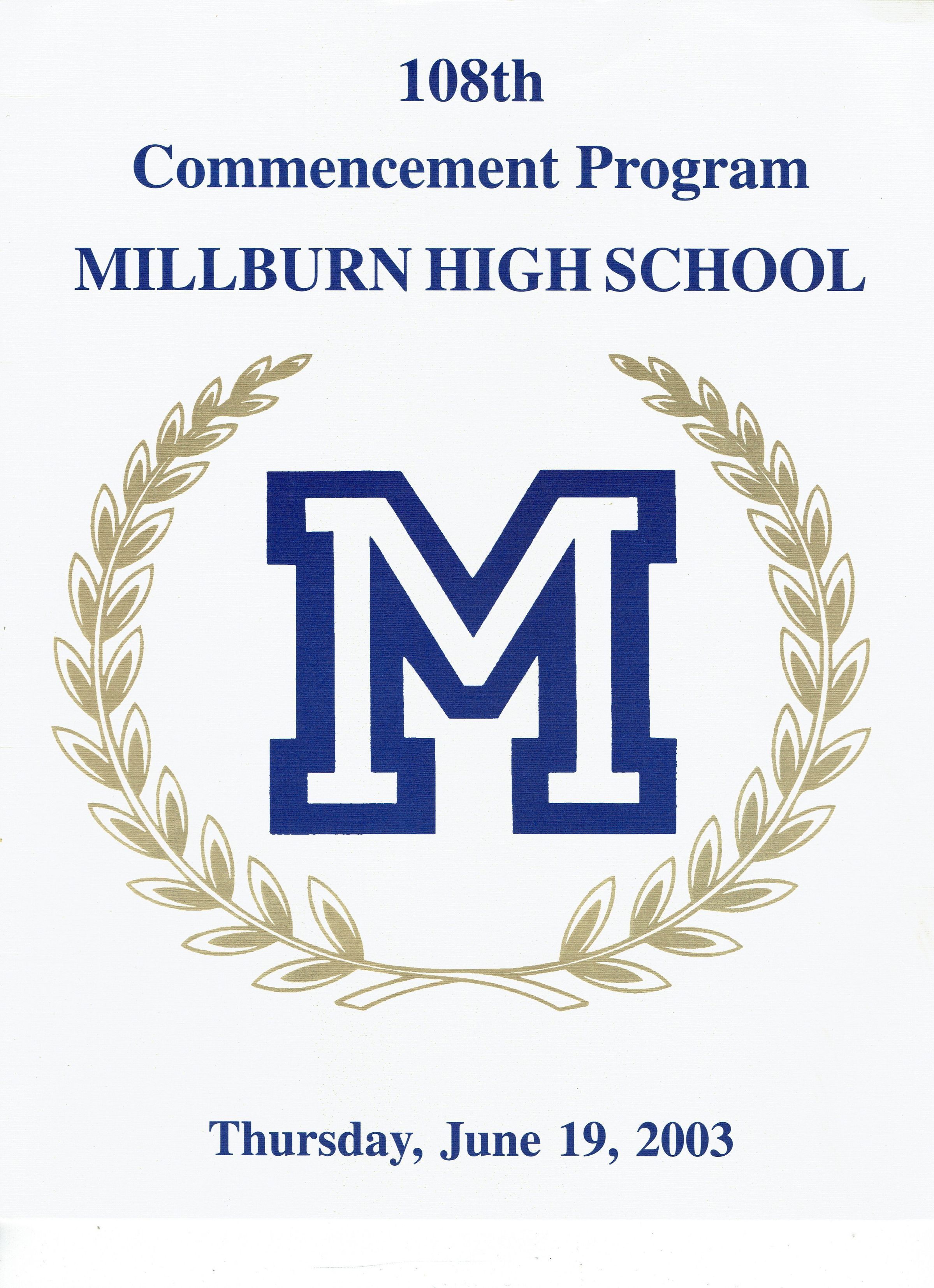 108th Millburn High School Commencement Program, Thursday, June 19, 2003.Acquisition