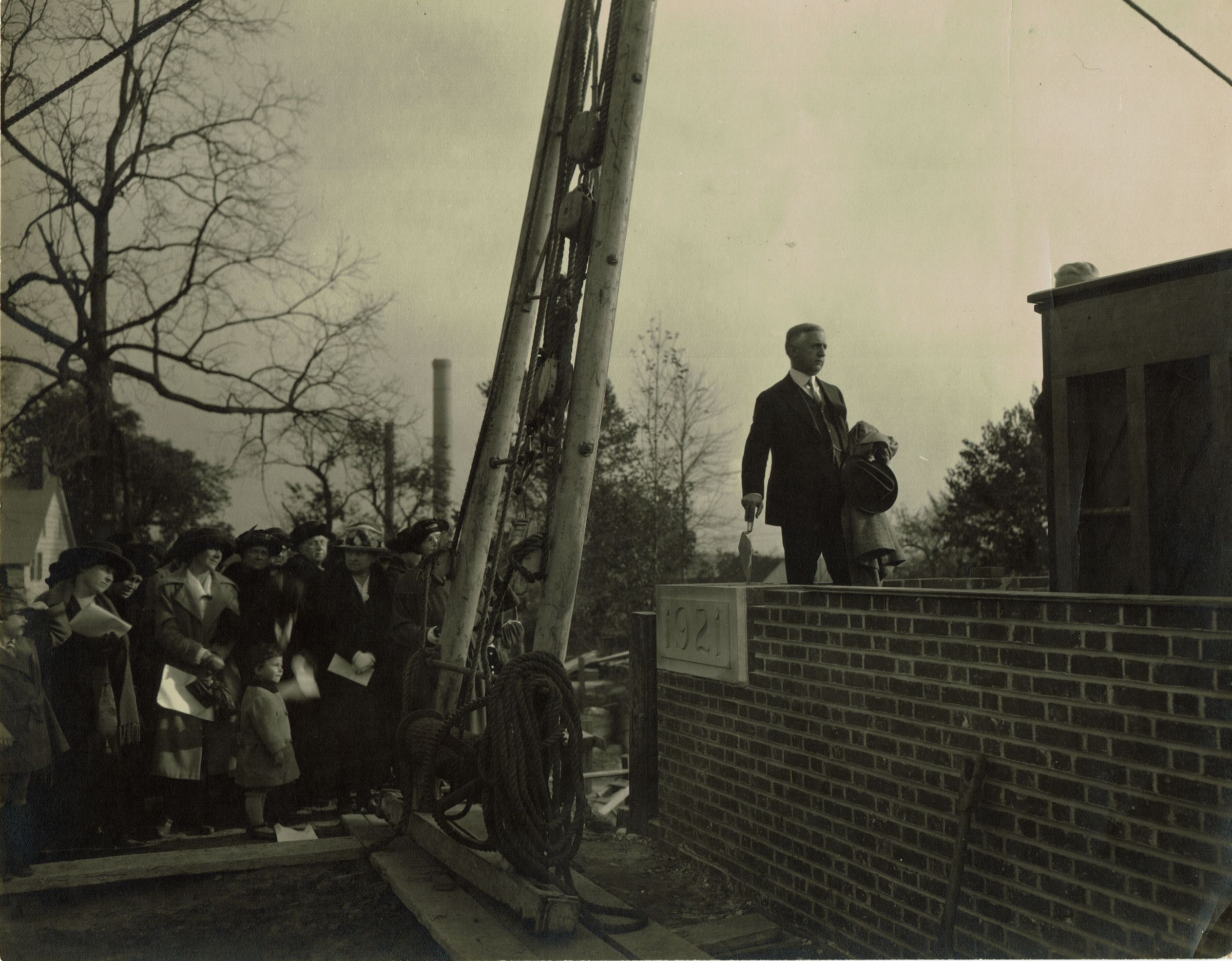 Photograph of Millburn Board of Education President Dean Emery at the laying of the cornerstone for the Millburn High School, October 26, 1921.