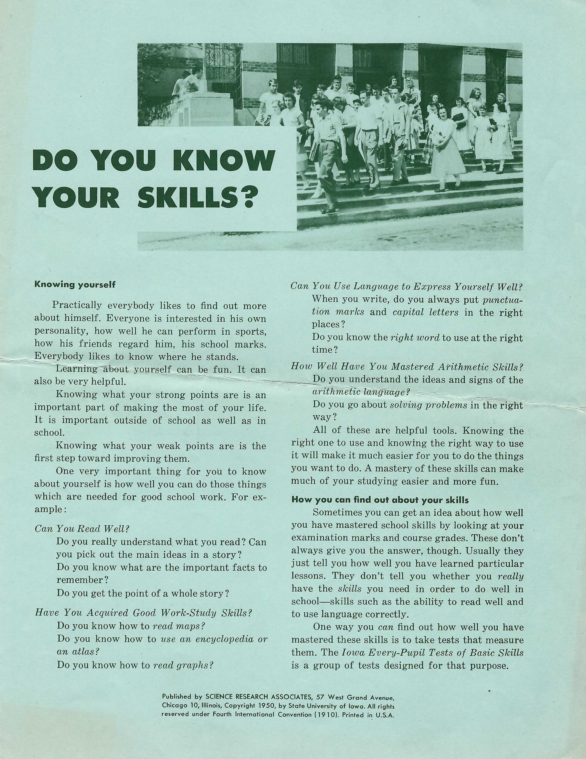 Millburn High School: Do You Know Your Skills? Standardized Testing, 1951Entry/Object ID