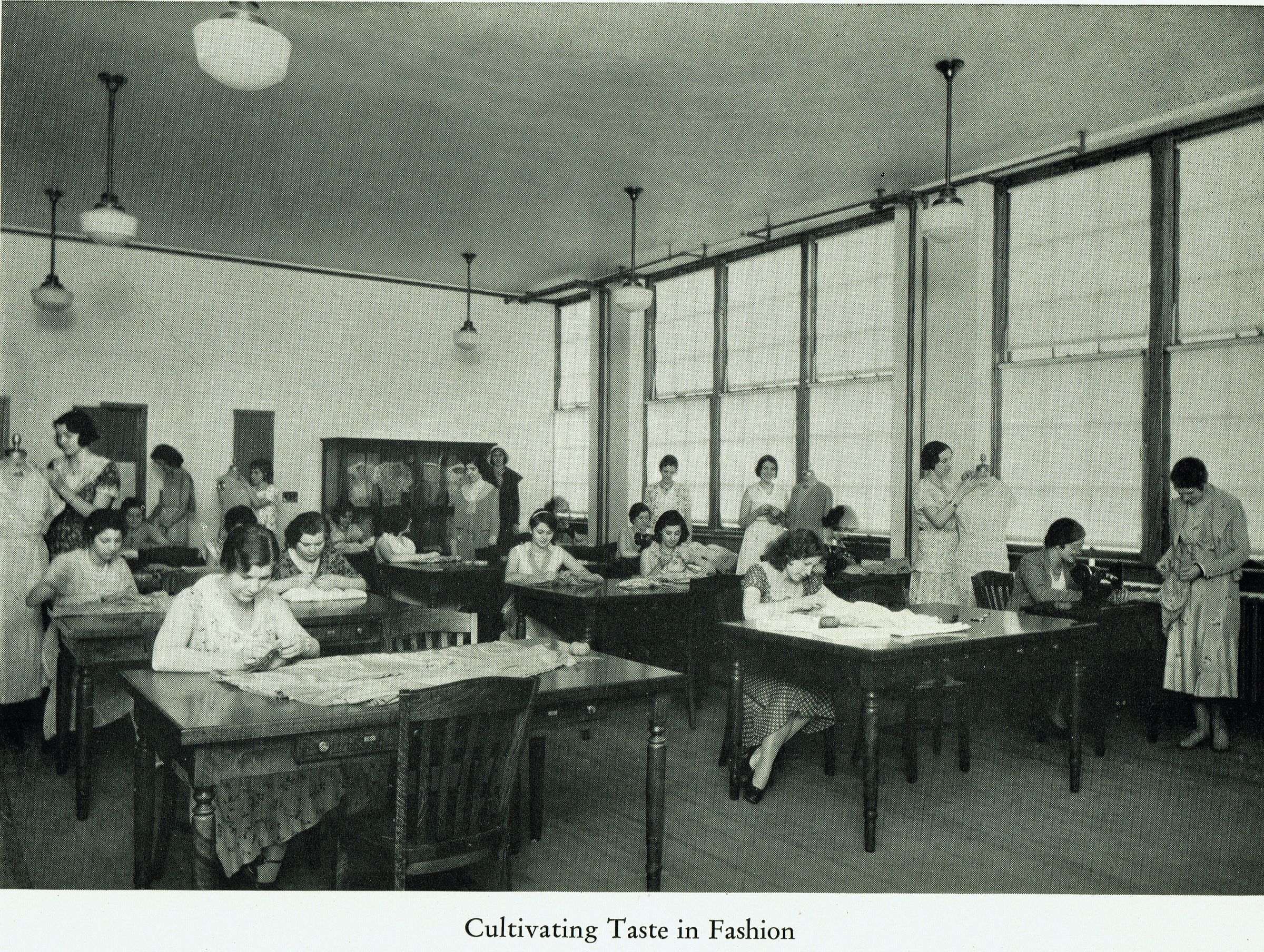 Photograph of a Fashion Design/Sewing Class from the 1931 Millburn High School Promotional Program.Acquisition