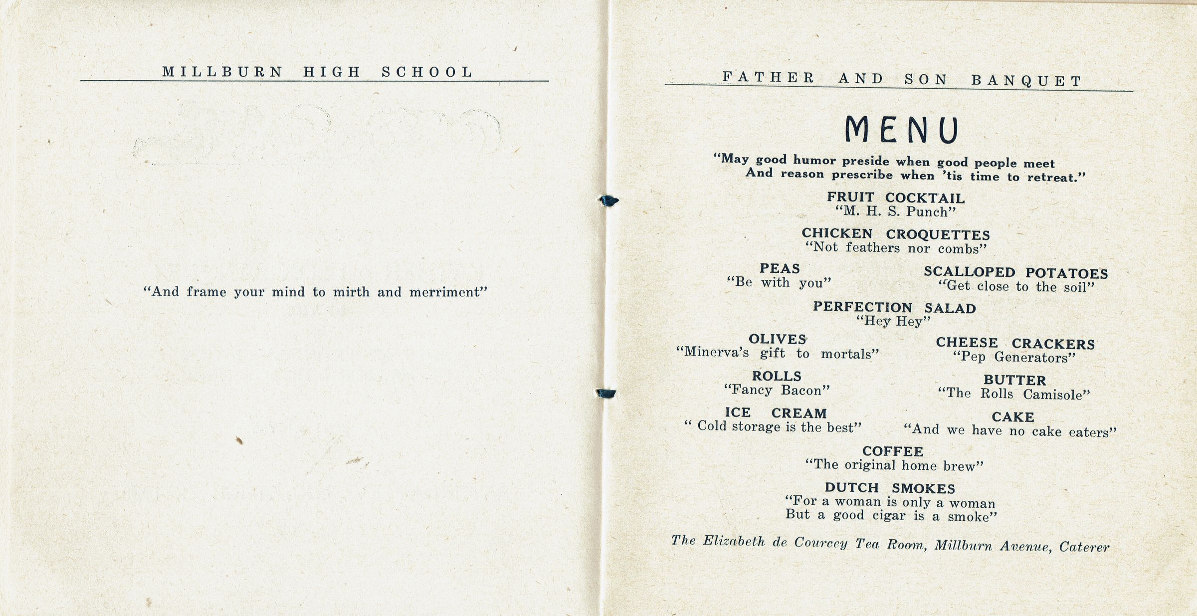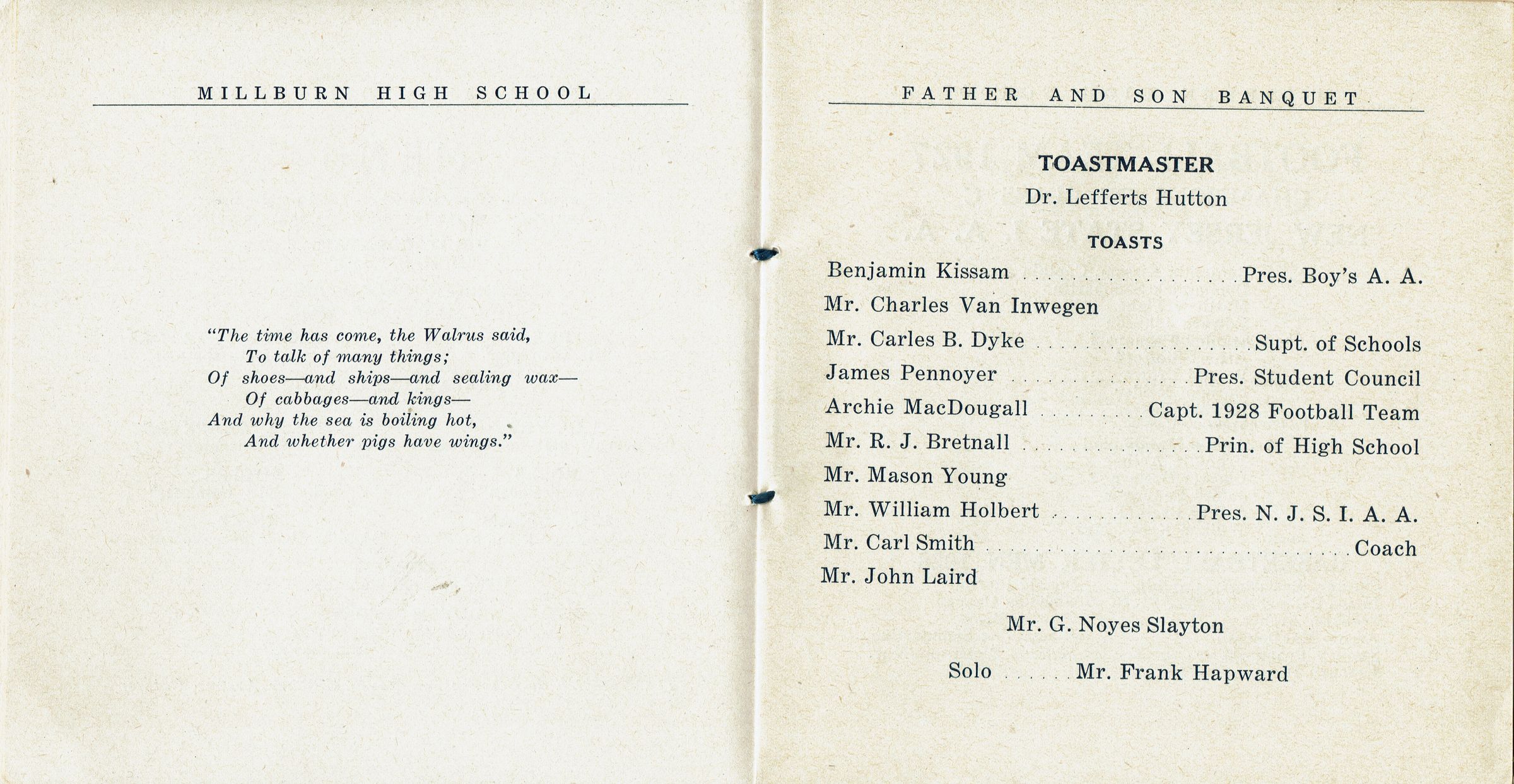 Millburn High School Father and Son Banquet Program, 1928Entry/Object ID