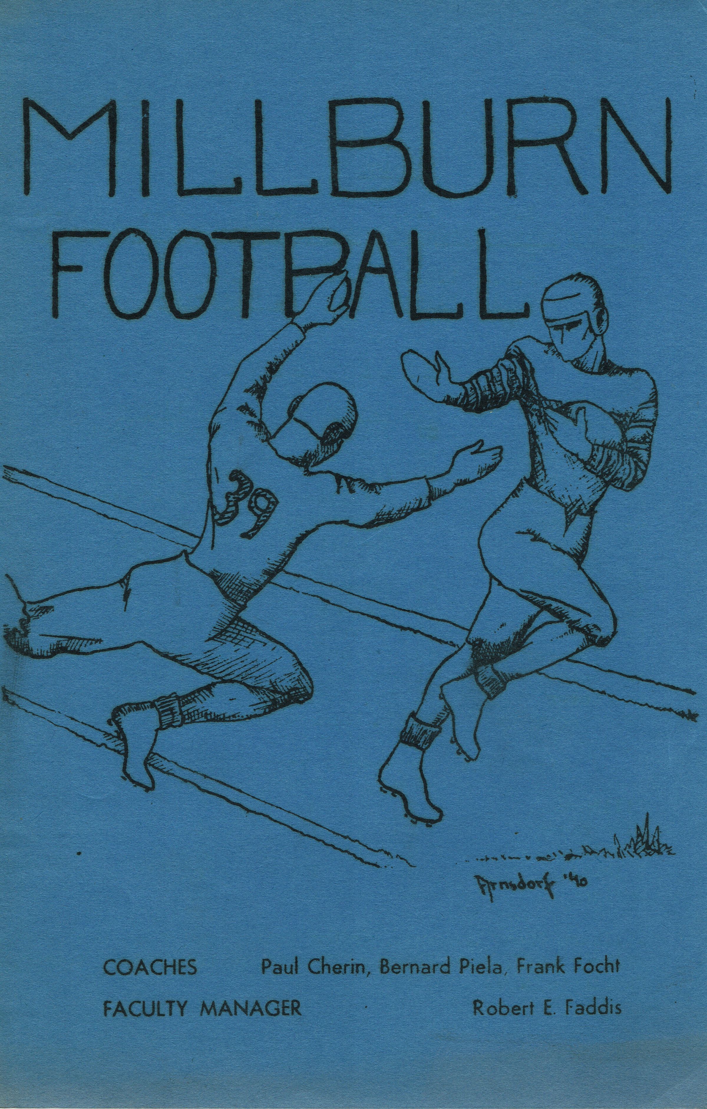 Program for the Millburn vs. Madison football game on November 25, 1939. 4 pp. Coaches were Paul Cherin, Bernard Piela and Frank Focht. Faculty Manager was Robert Faddis.Acquisition