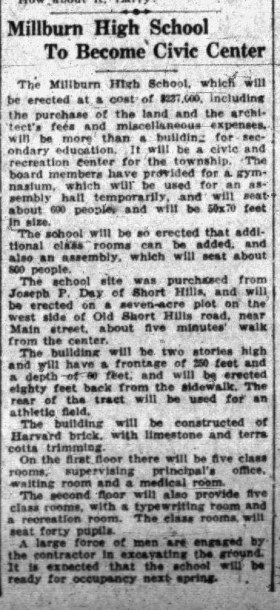 Millburn High School: Millburn High School, Old Short Hills RoadEntry/Object ID