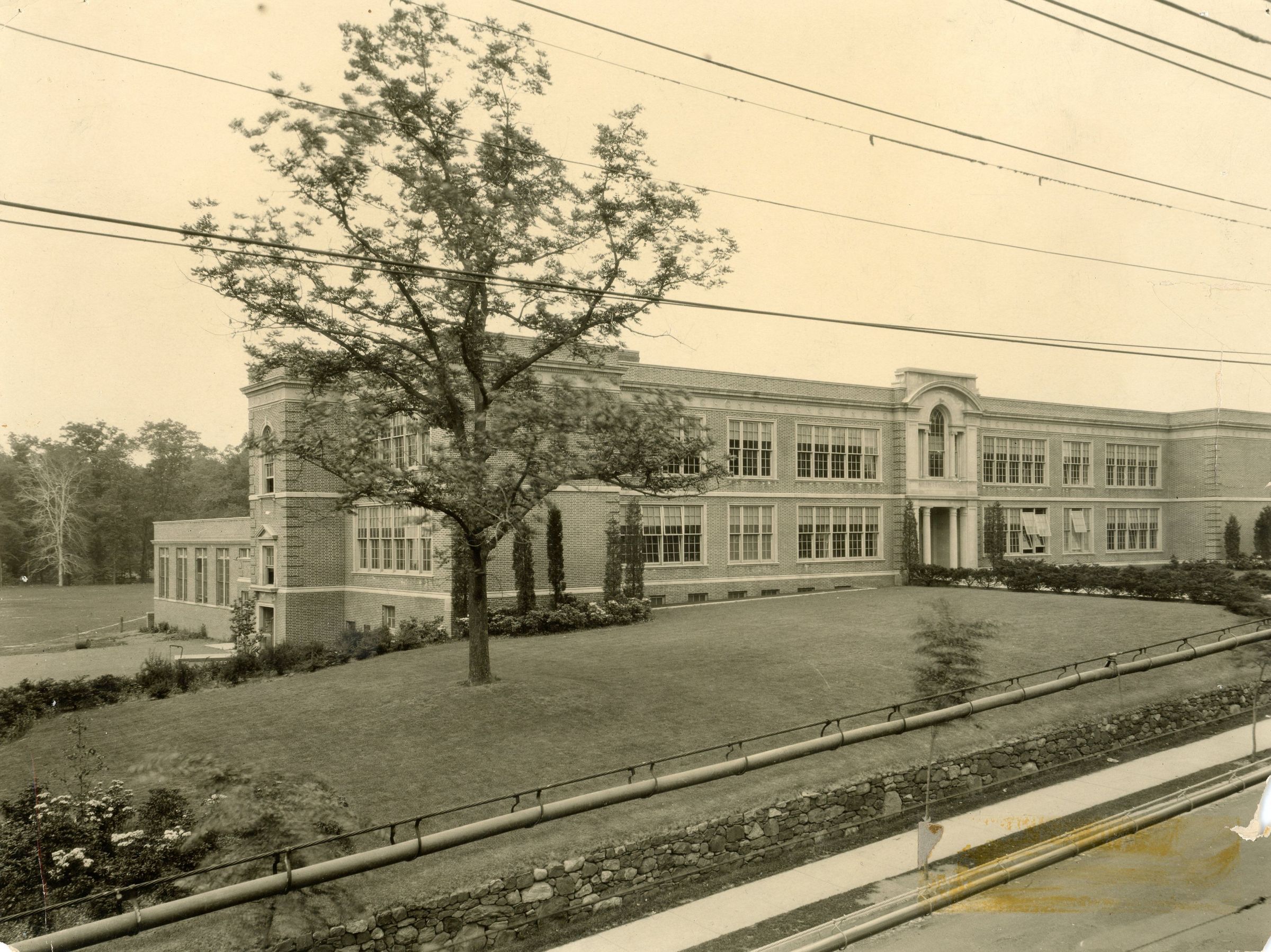 Photograph of Millburn High School on Old Short Hills Road viewed towards the north west. The original unit of the Millburn High School was built on Old Short Hills Road from 1921-1922. It consisted of 12 classrooms and a gymnasium and serviced the 192 students in grades 7-12. Note: Of these, there were only 33 students in grade 10-12.