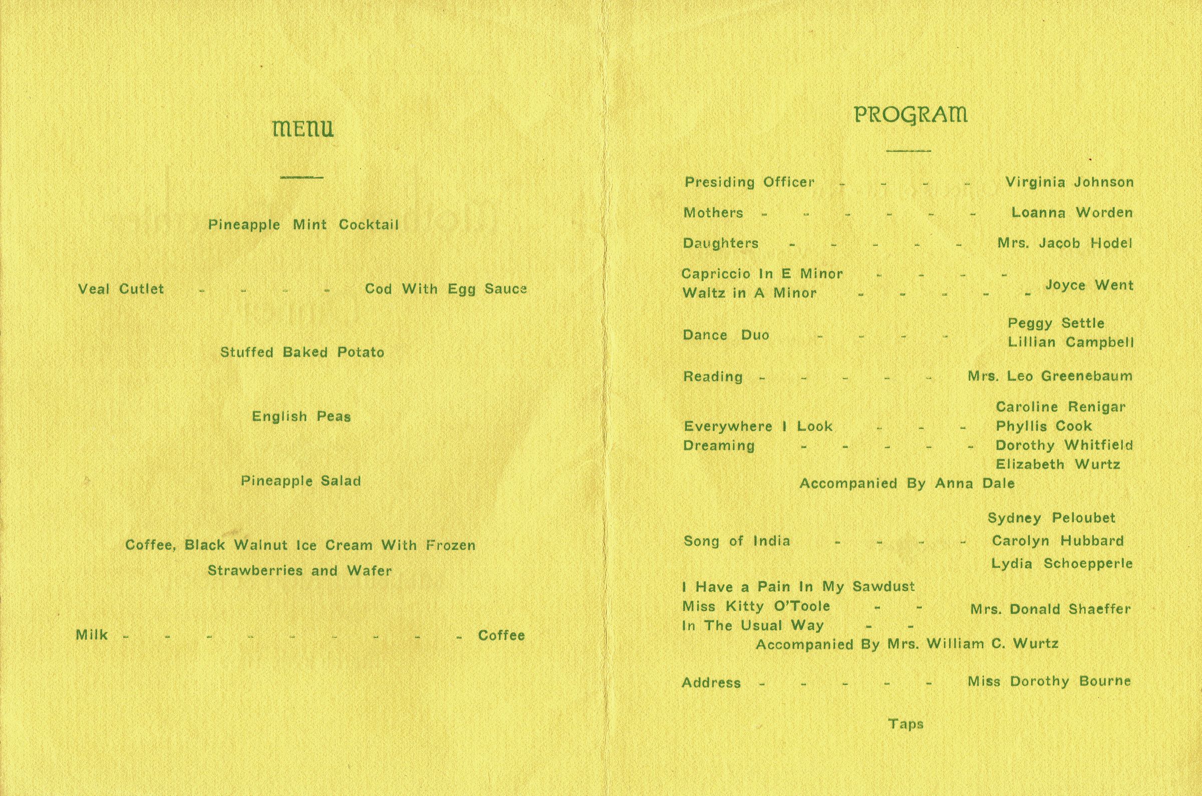 Millburn High School Mother-Daughter Dinner Program, 1936Entry/Object ID