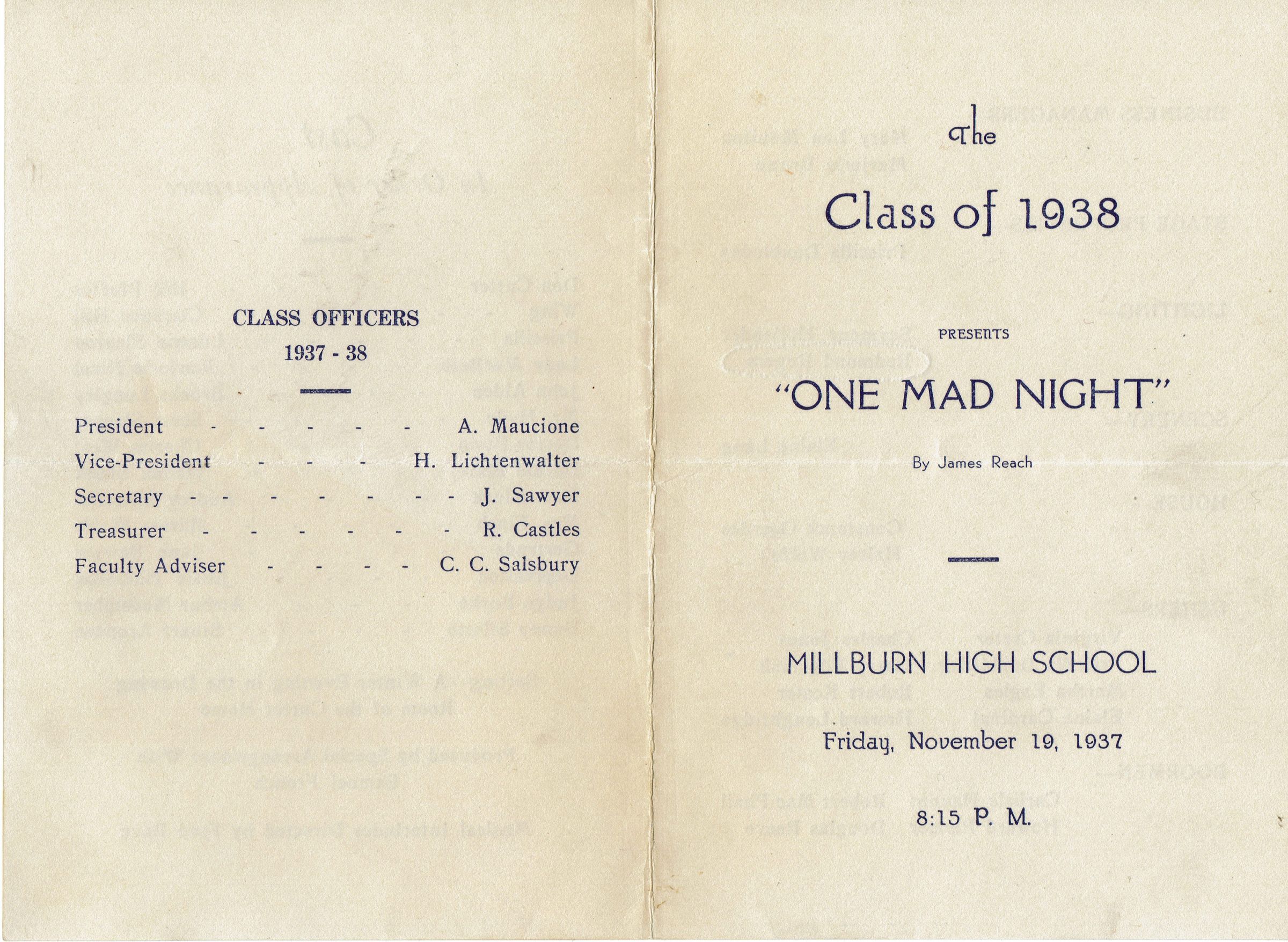Millburn High School: One Mad Night Program, 1937
