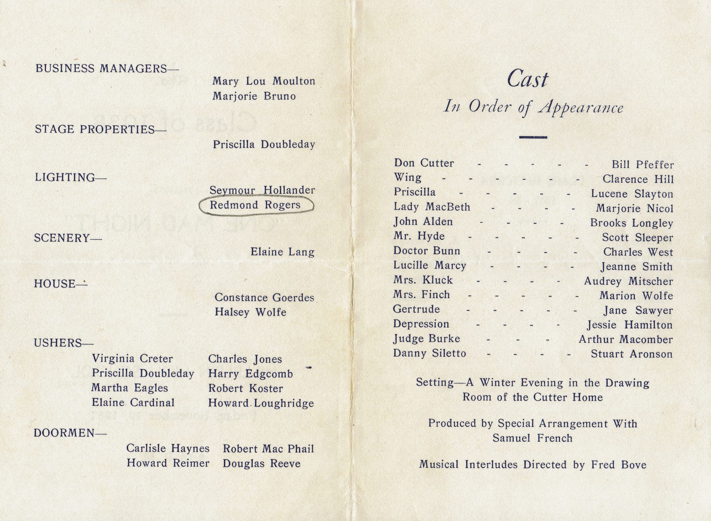 Millburn High School: "One Mad Night" Program, 1937