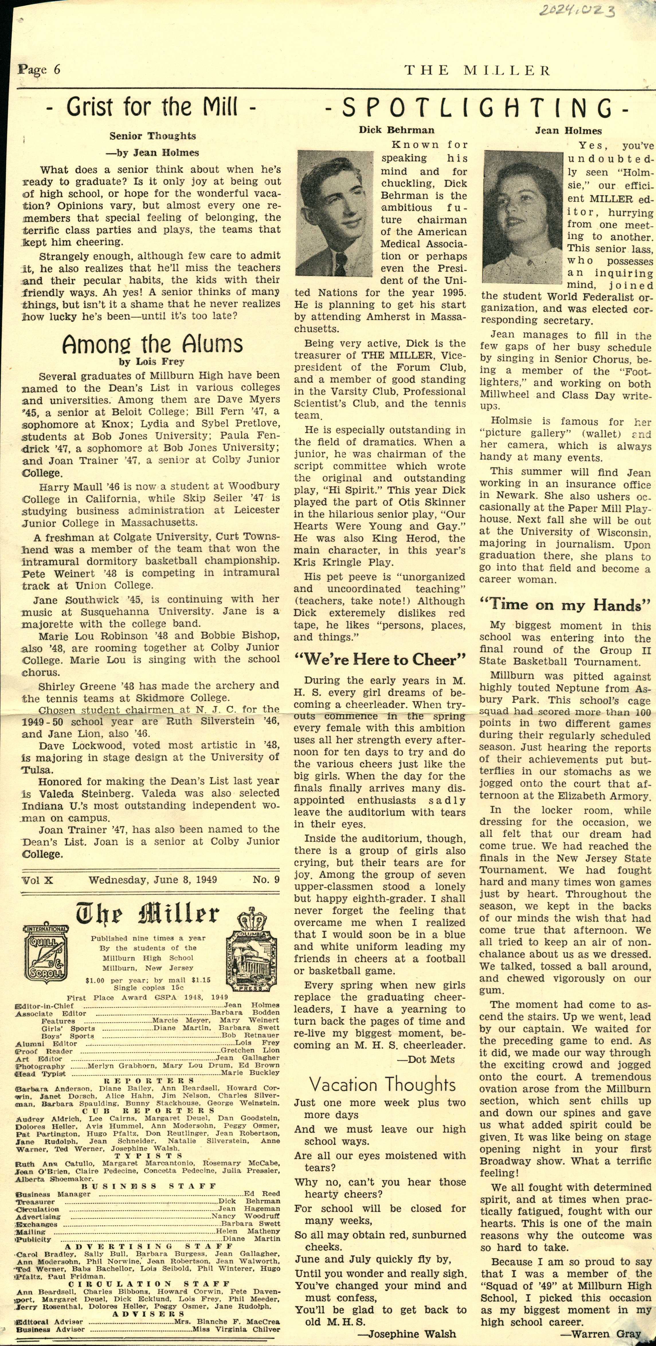 Millburn High School: The Miller, June 8, 1949