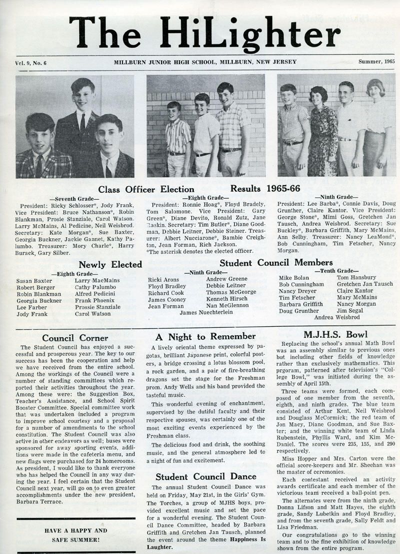 Millburn Junior High School "HiLighter" newsletters 1963-1966Entry/Object ID