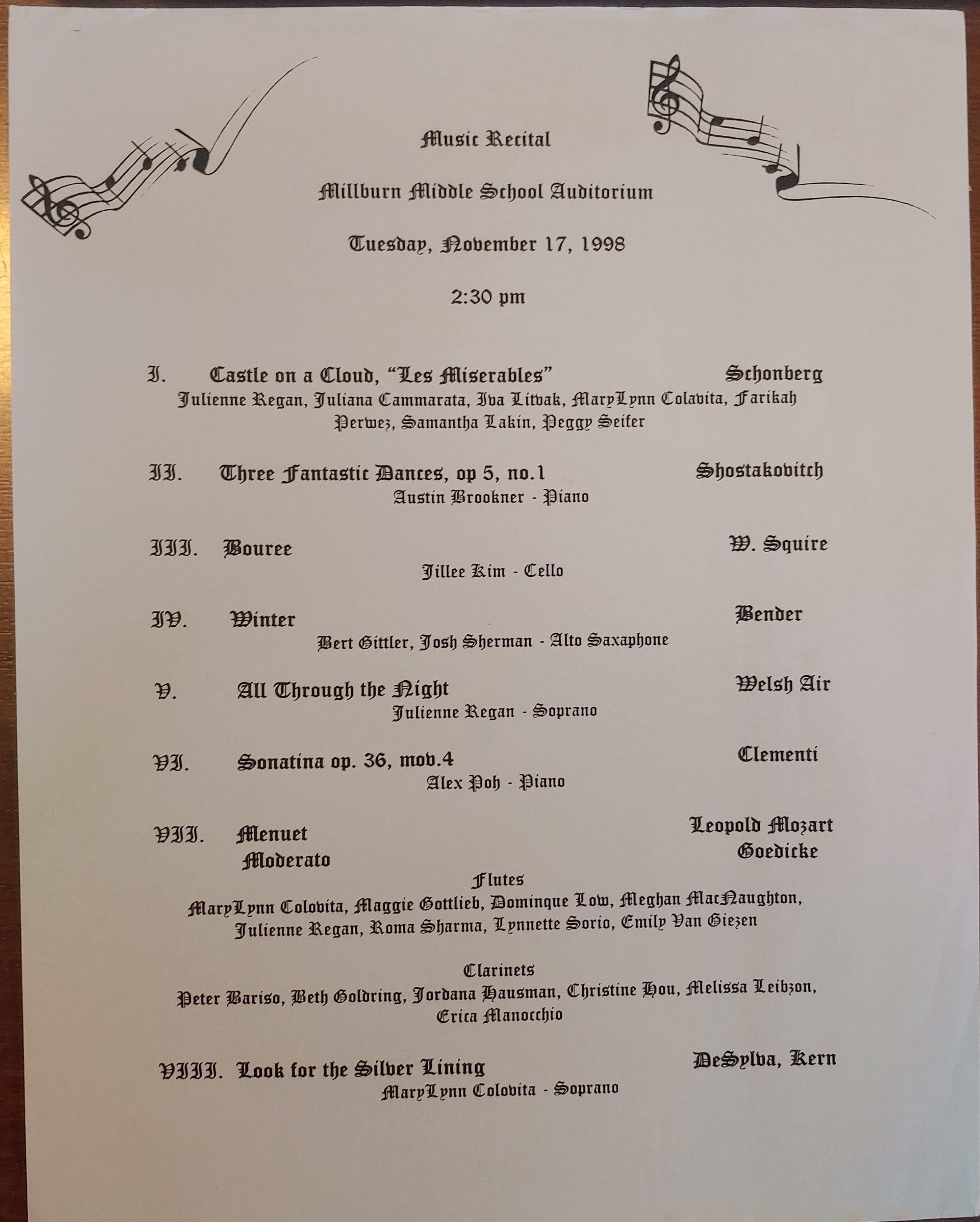 Millburn Middle School: Music Recital - 11/17/1998Entry/Object ID