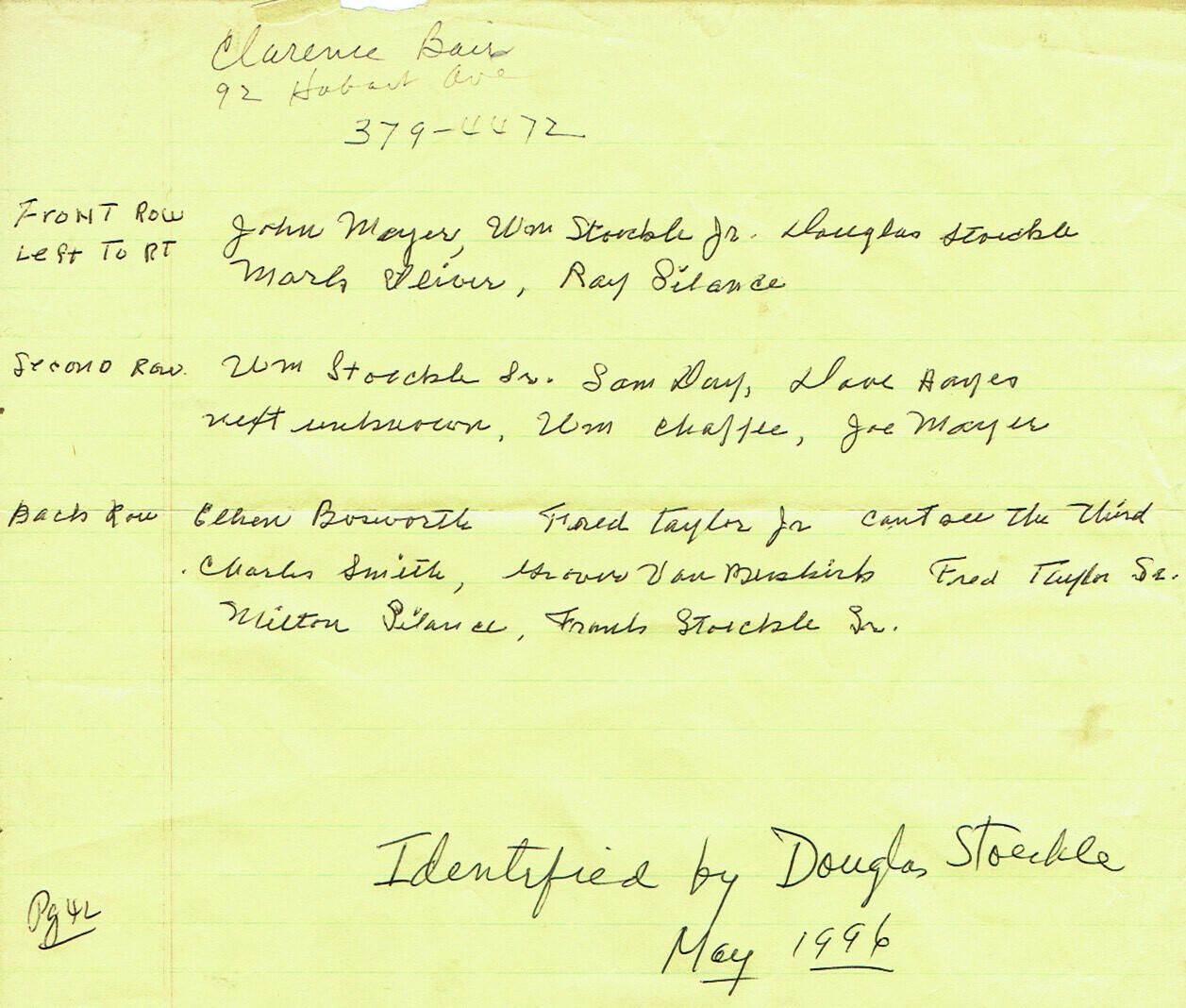 The Millburn Municipal Band was a popular attraction at town events and festivals starting in the 1910s. Pictured are: Front Row (Left to Right): John eyer, William Stoeckle, Jr., Douglas Stoeckle, Mark Silver, Ray Silance. Second Row: William Stoeckle, Sr., Sam Day, Dave Hayes, unknown, William Chaffle, Joe Mayer. Back Row: Ethan Bosworth, Fred Taylor, Jr., unknown, Charles Smith, Grover van Mershirk (?), Fred Taylor, Sr., Milton Silance, Frank Stoeckle, Sr.
