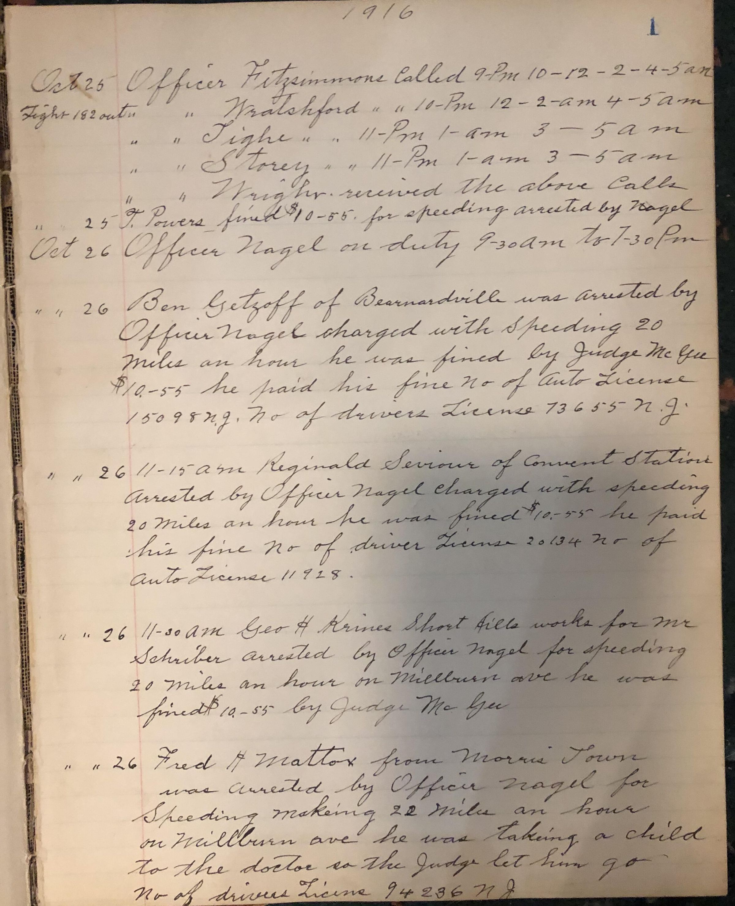 Millburn Police Blotter, 1916-18