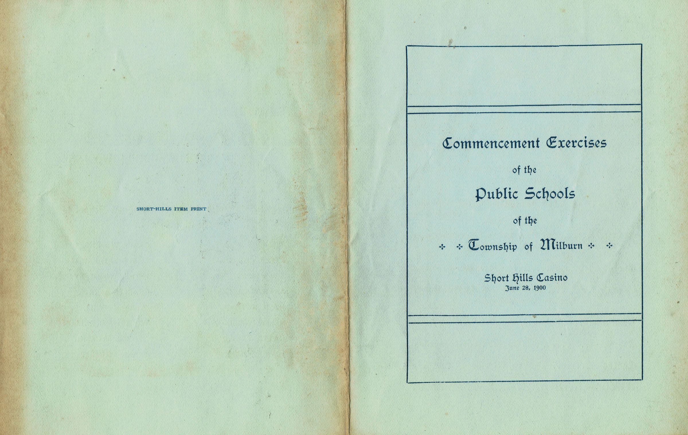 Millburn Public Schools: Commencement Program, 1900Entry/Object ID