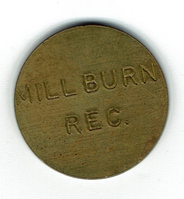 8 metal tokens issued by the Millburn Department of Recreation. Each token was good for one hour of light at the Gero Park platform tennis courts.Acquisition